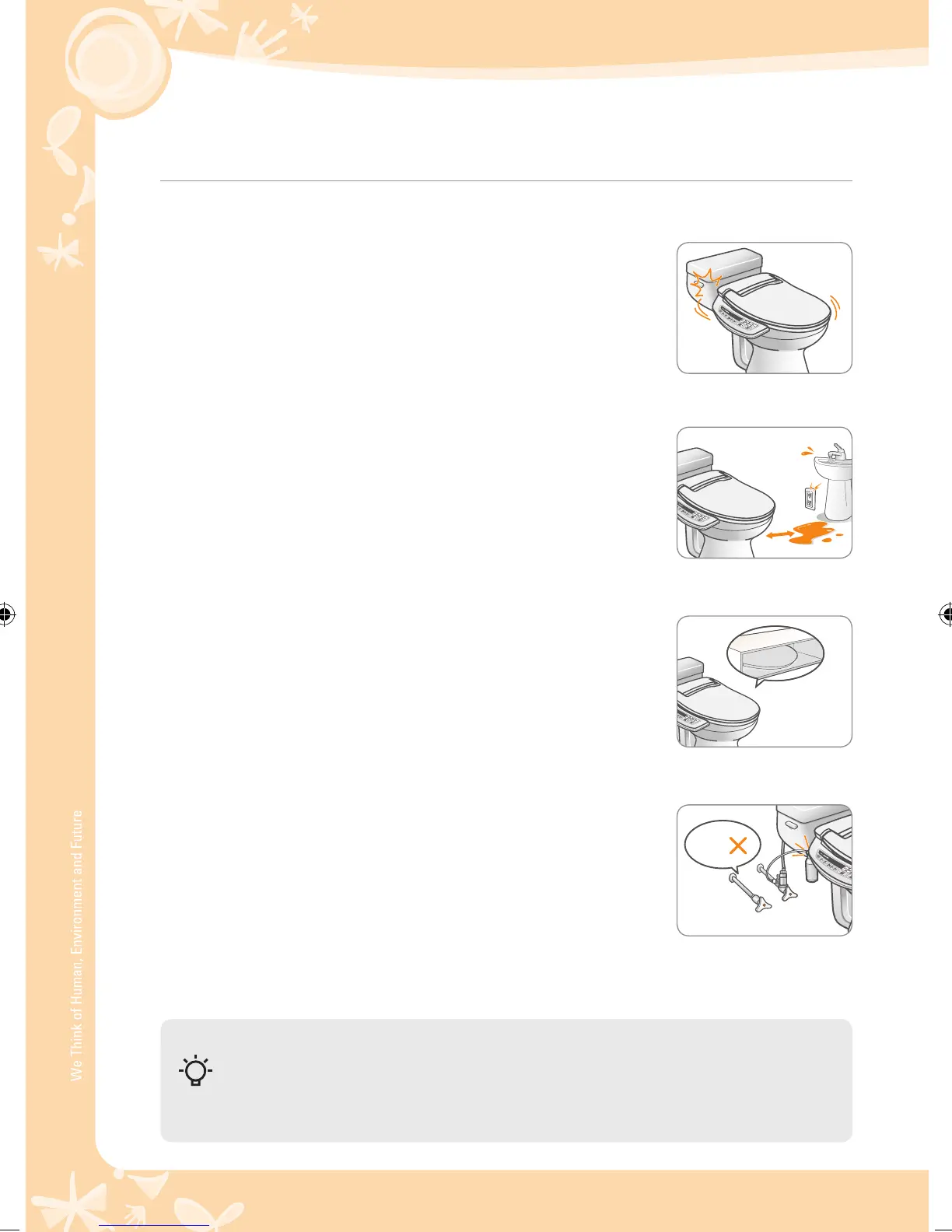 Tighten the fixing screws firmly so that the bidet body won’t be shaky on