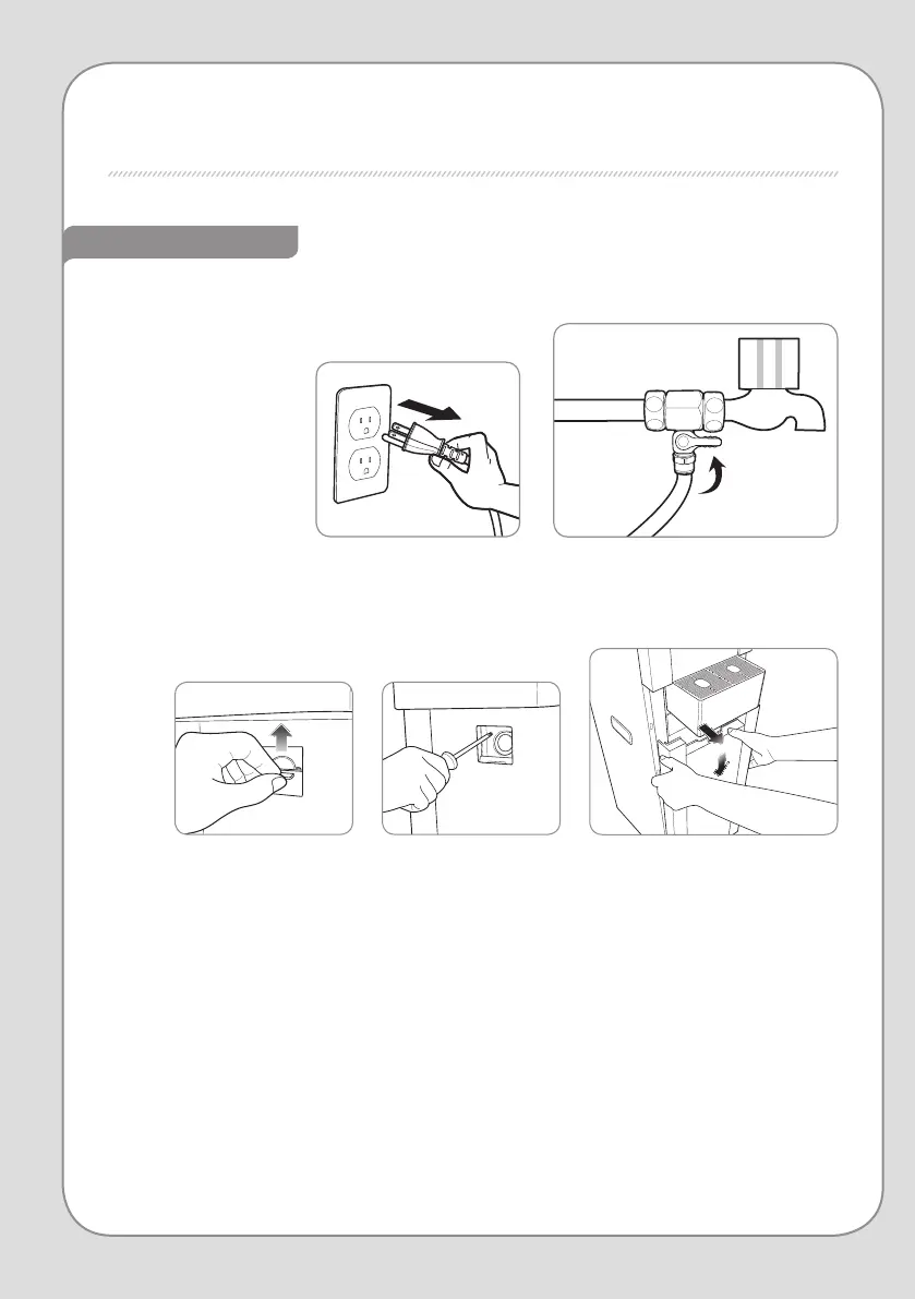 1.전원플러그를반드시뺀후에원수공급밸브를잠그고,정수기내부의물을완전히배수해