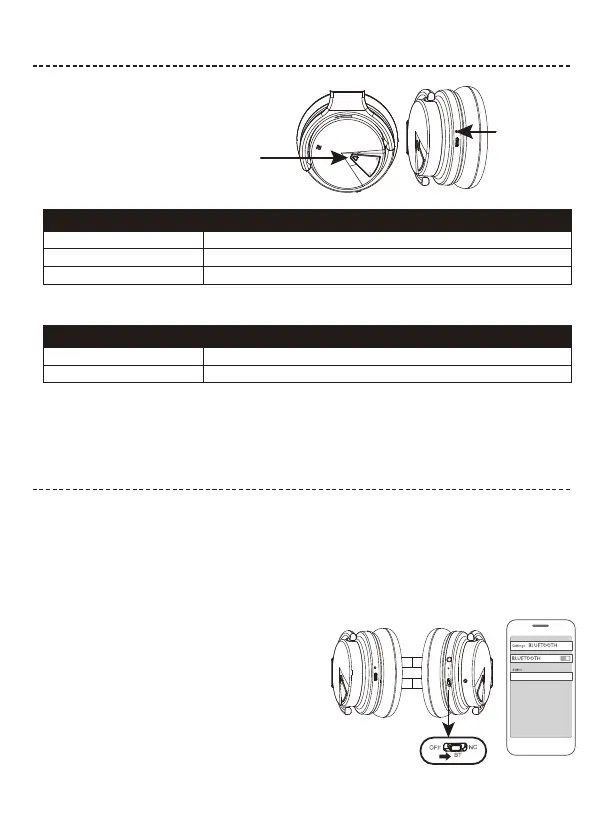Die Bluetooth-Anzeigen befinden sich an der rechten Ohrmuschel.