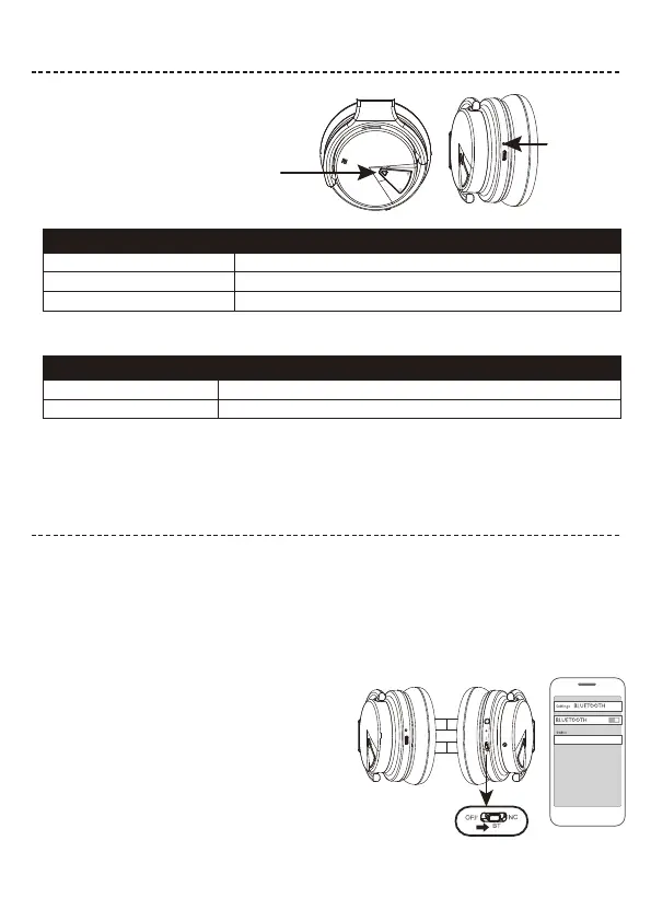Bluetoothインジケーターは右のイヤーカップにあります。