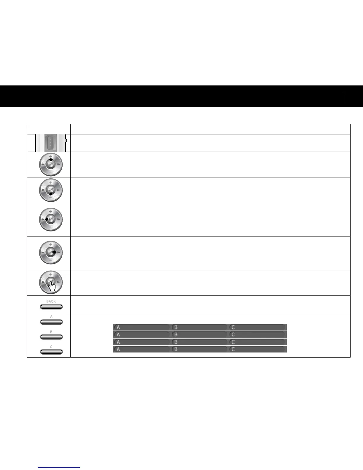 • File Browser appears when pressed during file playback. • Mode Selection screen appears when pressed in File Browser.