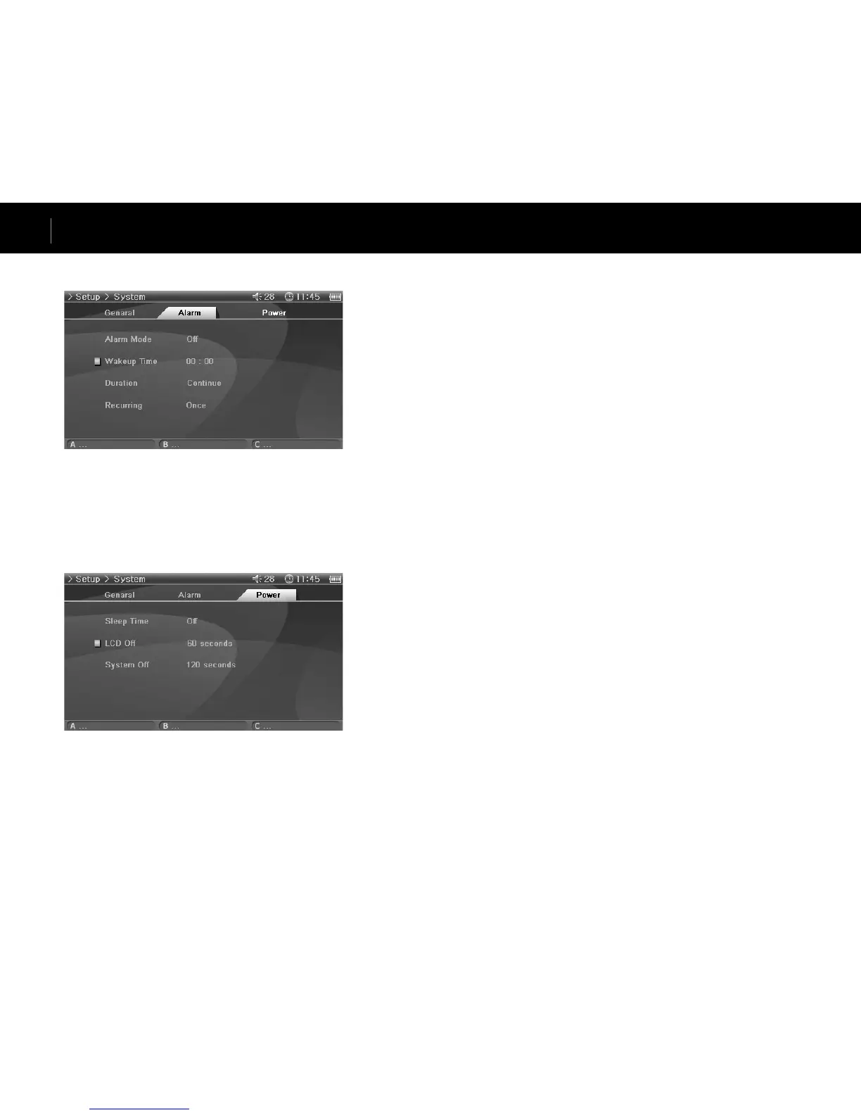 • Power automatically turns on at a specified time for Movie Player, Music Player and FM Radio