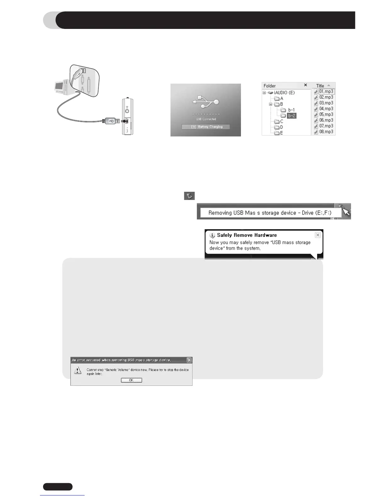 5. Copy multimedia files (music, picture, encoded video files) from your computer to either ‘COWON” drive or