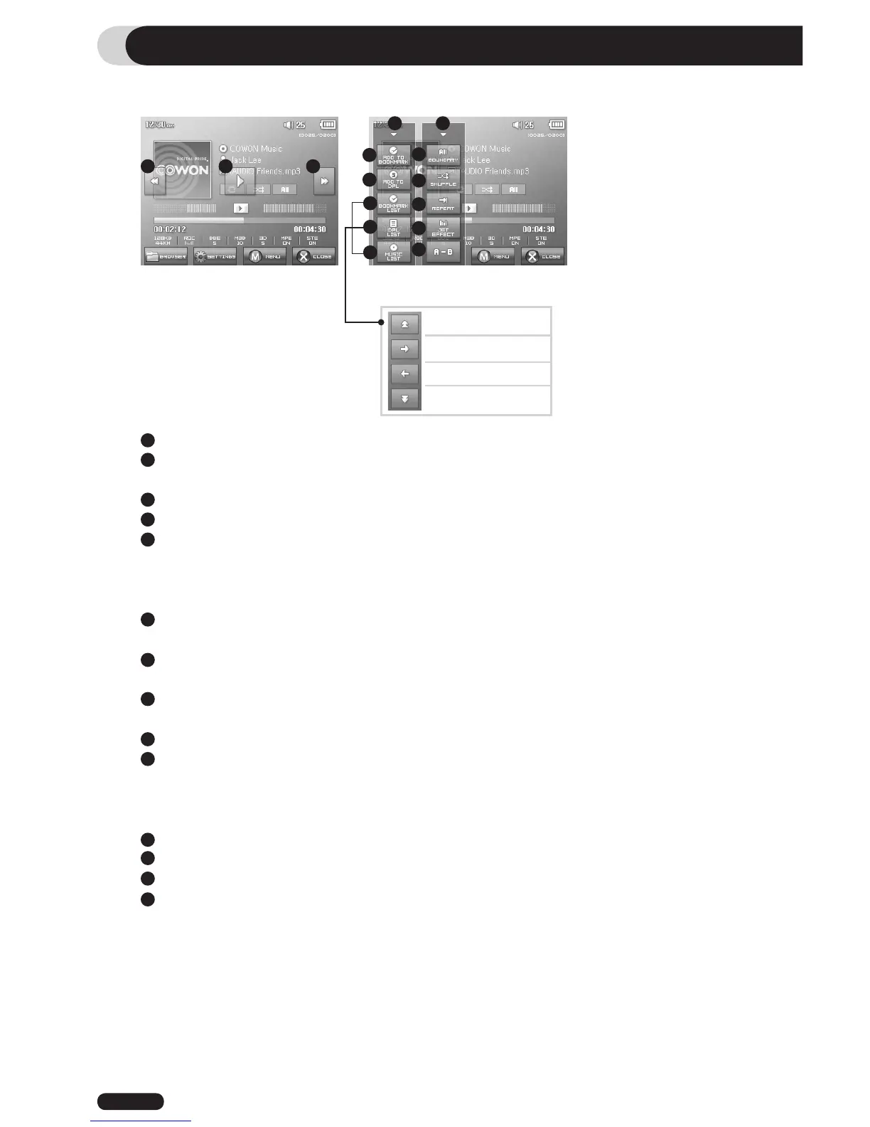 Used to find and play back bookmarked music files