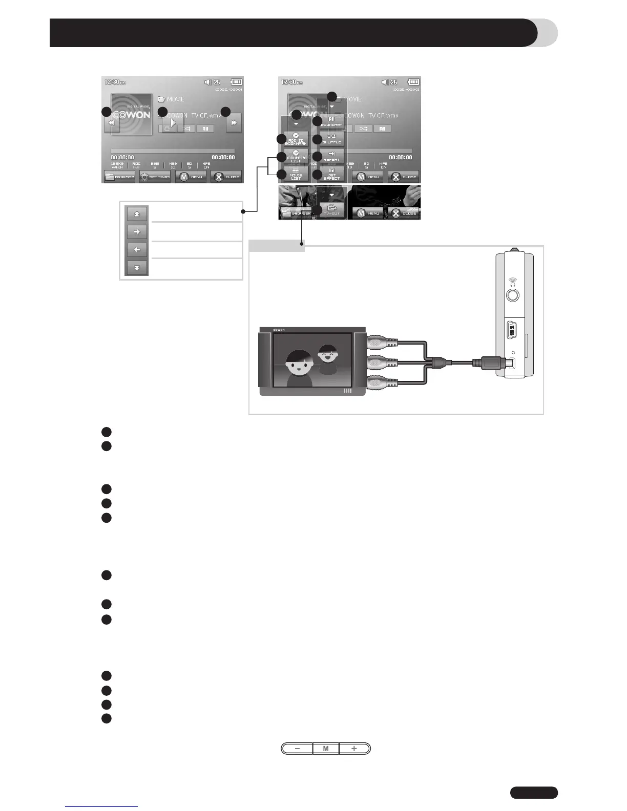 When TV OUT is selected, volume level is fixed and headphone cannot be used.