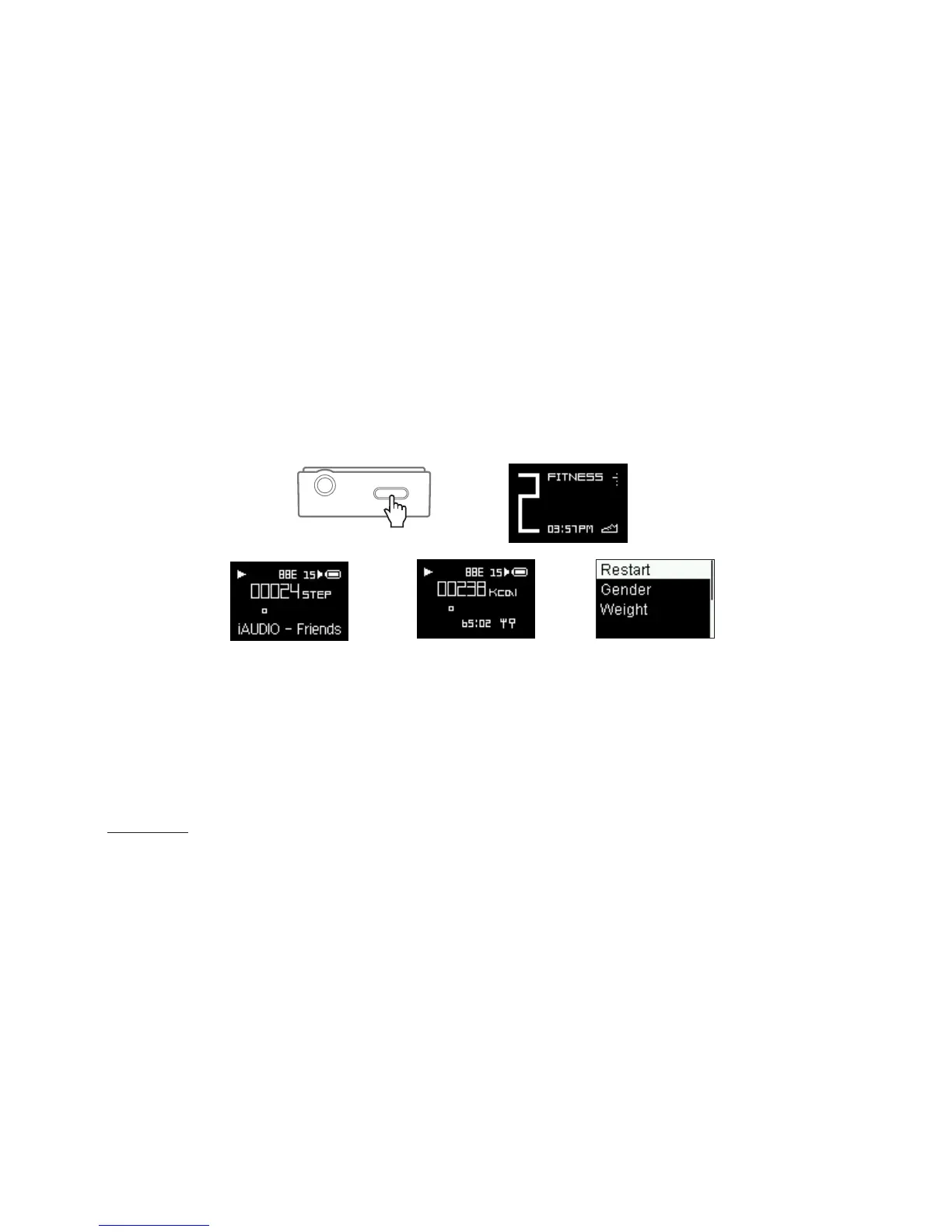 button, and select FITNESS to select the user's gender and weight Select Restart to reset the
