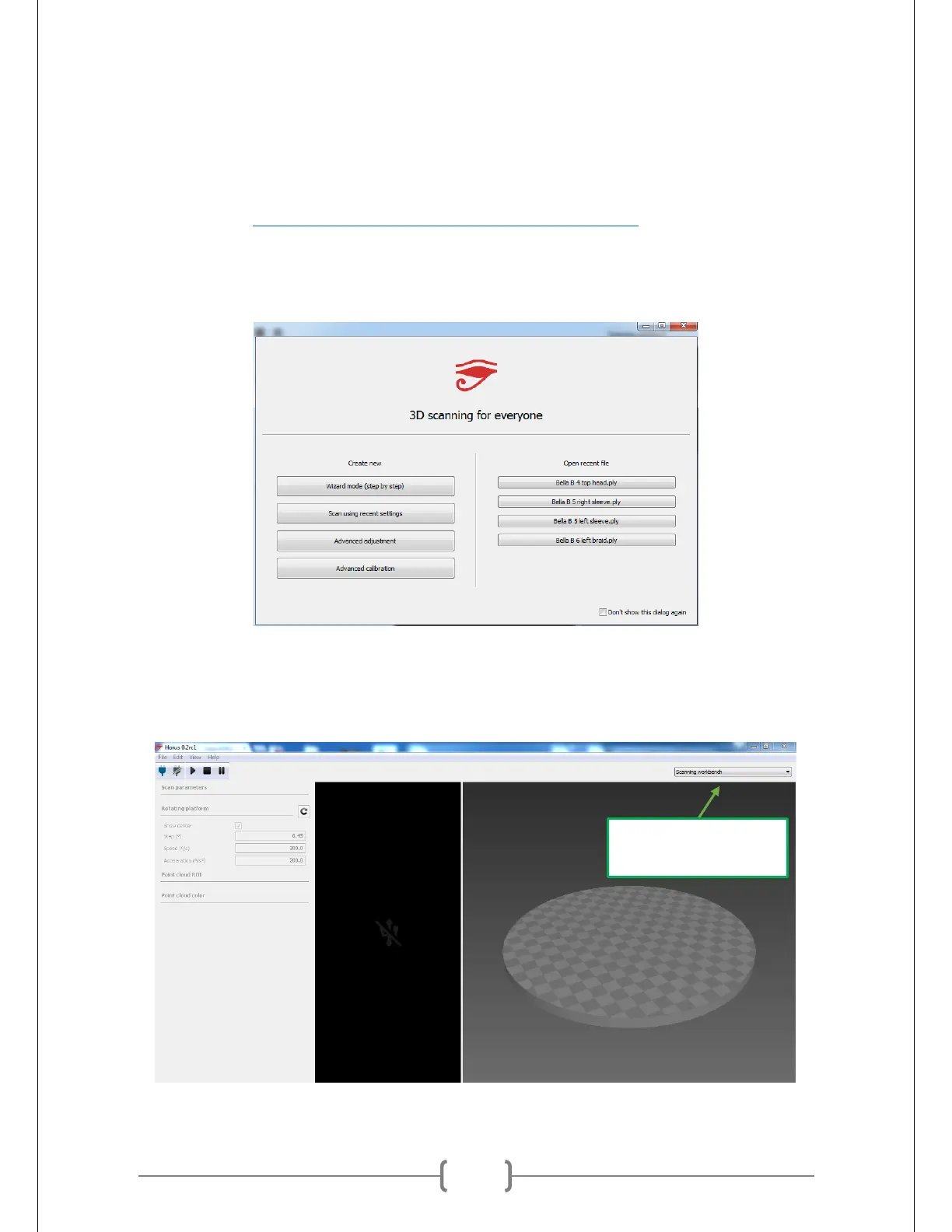 drop-down bar on the top right corner of the window. The default workbench is the Scanning
