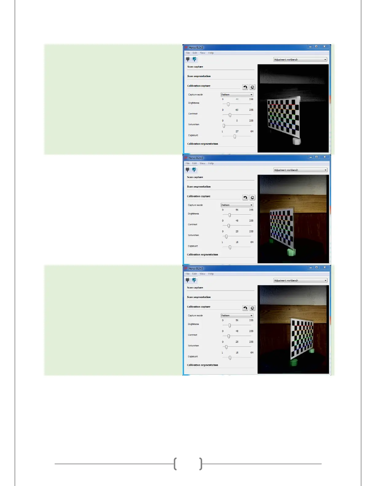 Make sure that the rainbow lines are detected along the entire range of rotation from left to right.