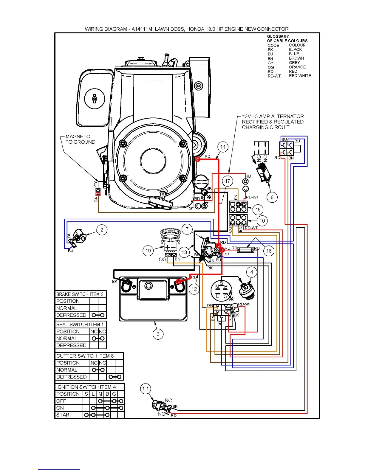 COX A14011M - Wiring Diagram - A14111 M, Lawn Boss, Honda 13.0 HP Engine New Connector