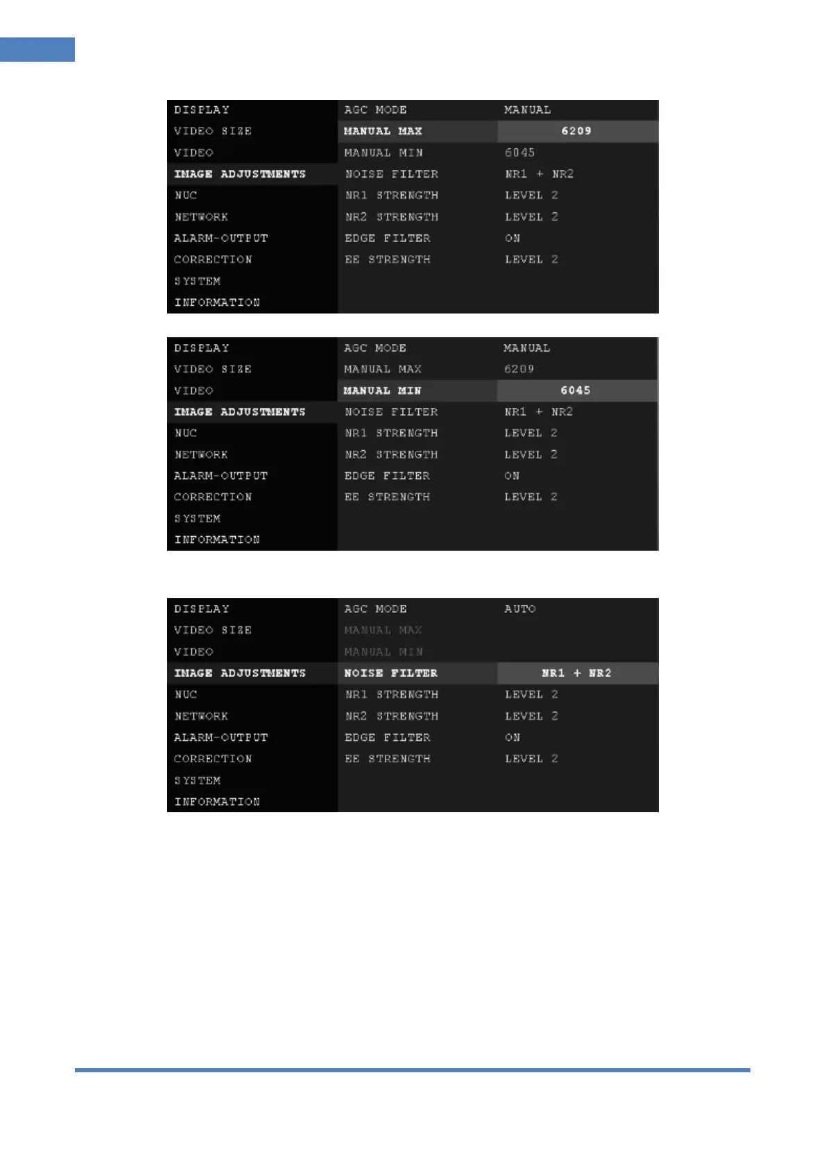 NR1: Apply built-in NOISE FILTER1 to decrease FIXED PATTERN NOISE.