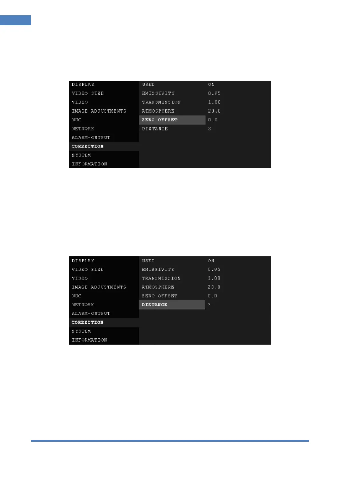Example.> When camera gives temperature data of 20℃ whose real temperature is 30℃, set ZERO