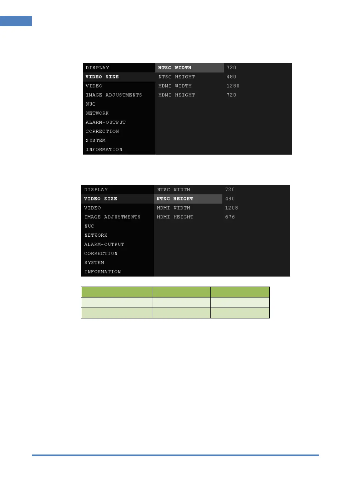 NTSC (PAL) WIDTH: Set width of NTSC or PAL video output