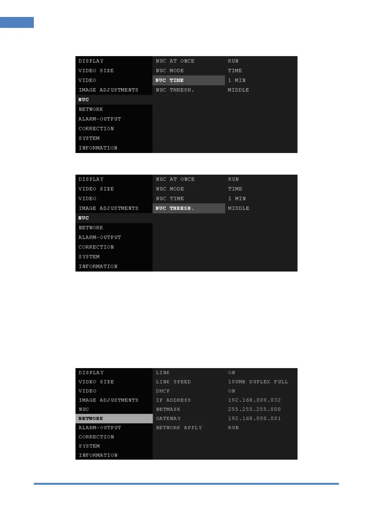 ④ NUC THRESH. : Set sensitivity of NUC when AUTO MODE is selected.