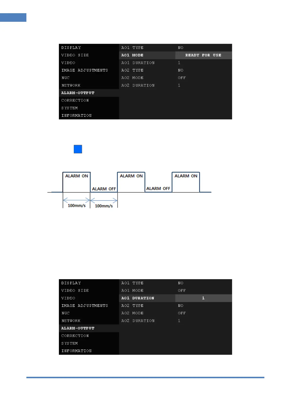 ③ A01 (02) DURATION: Set duration of alarm signal after alarm condition ended.