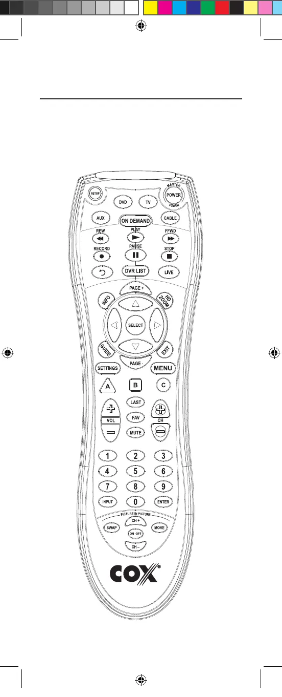 ubicar las funciones del Control remoto universal Cox