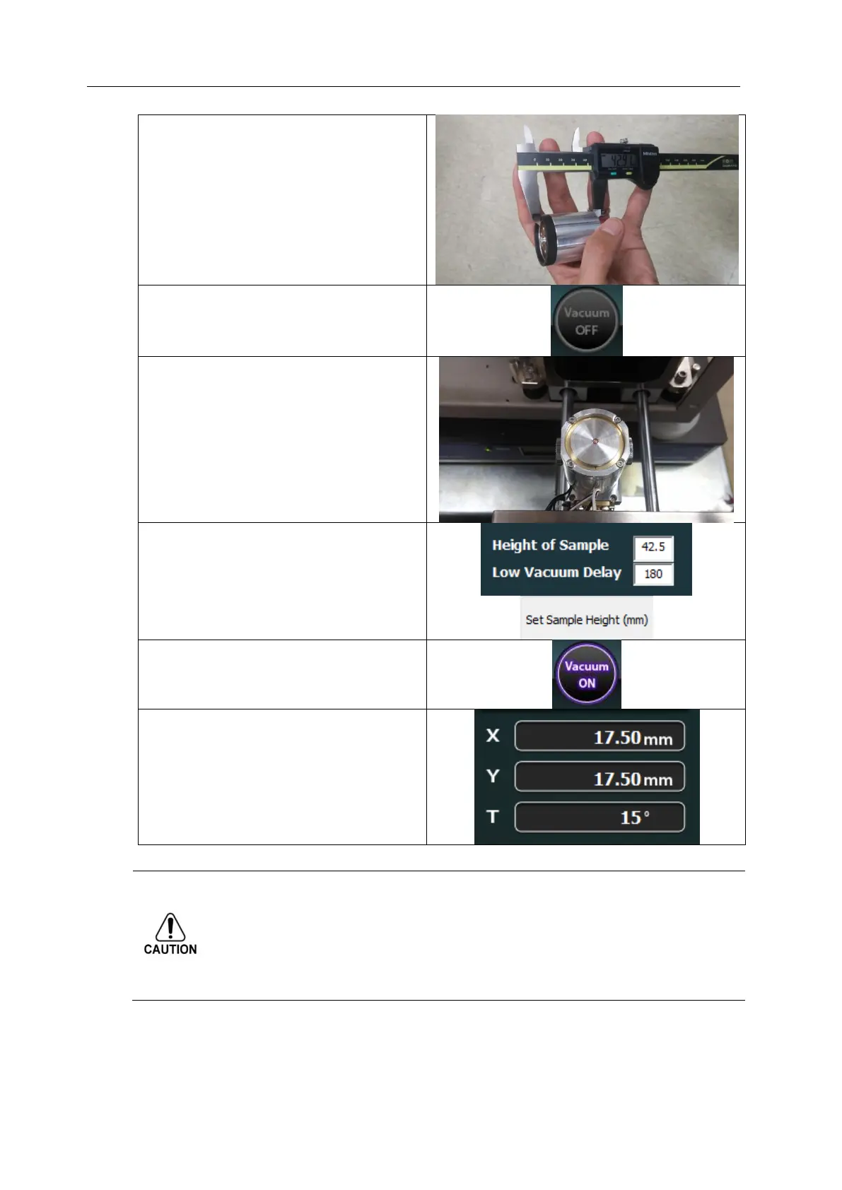 sample height for operation.