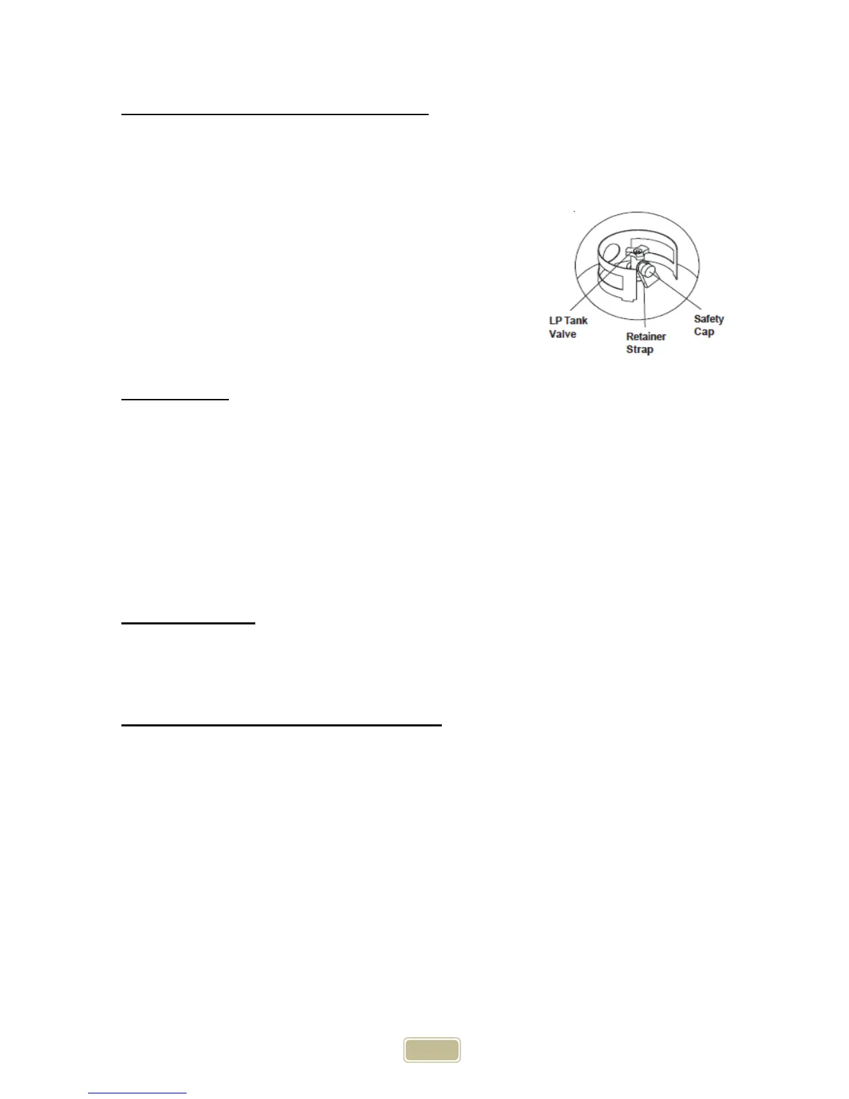 support bracket. Install safety cap onto LP tank valve. Always