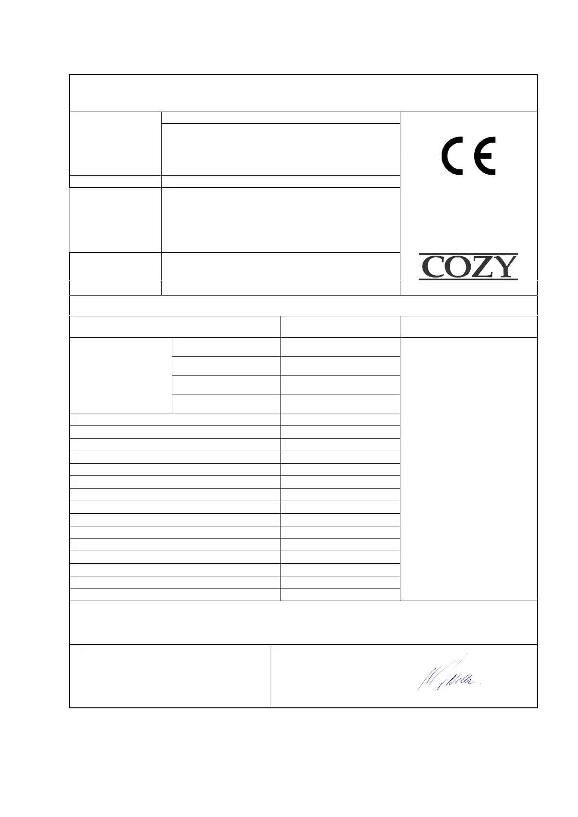 DECLARATION OF CONFORMITY COZY 12