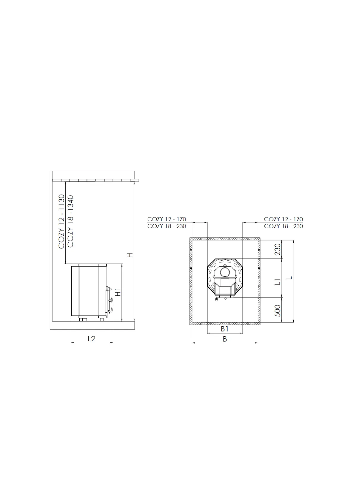 - Ceiling. The minimum safety distance between the top of the stove to the ceiling COZY 12- 1130