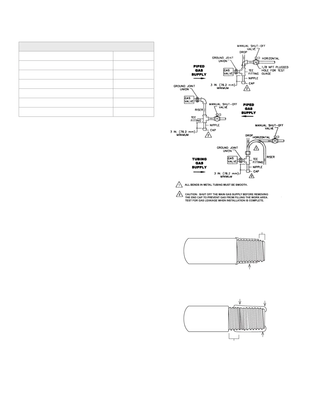 The gas supply line must be of an adequate size to handle the BTU/hr.