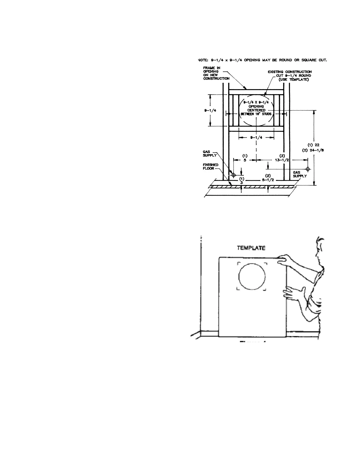 an optional blower kit). Drill a 1-1/2 inch hole in the wall for the gas