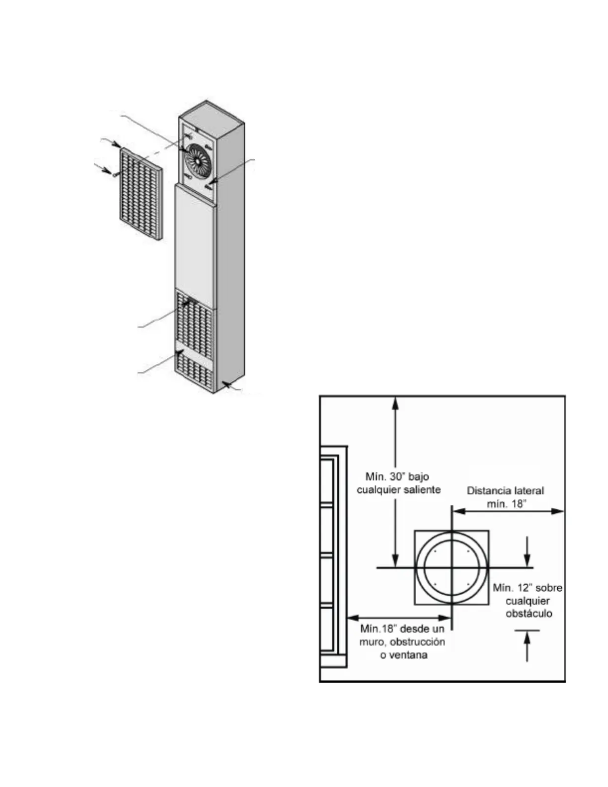 3. Mantenga mínimas distancias: a suelo 0 " , a techo 4 ",