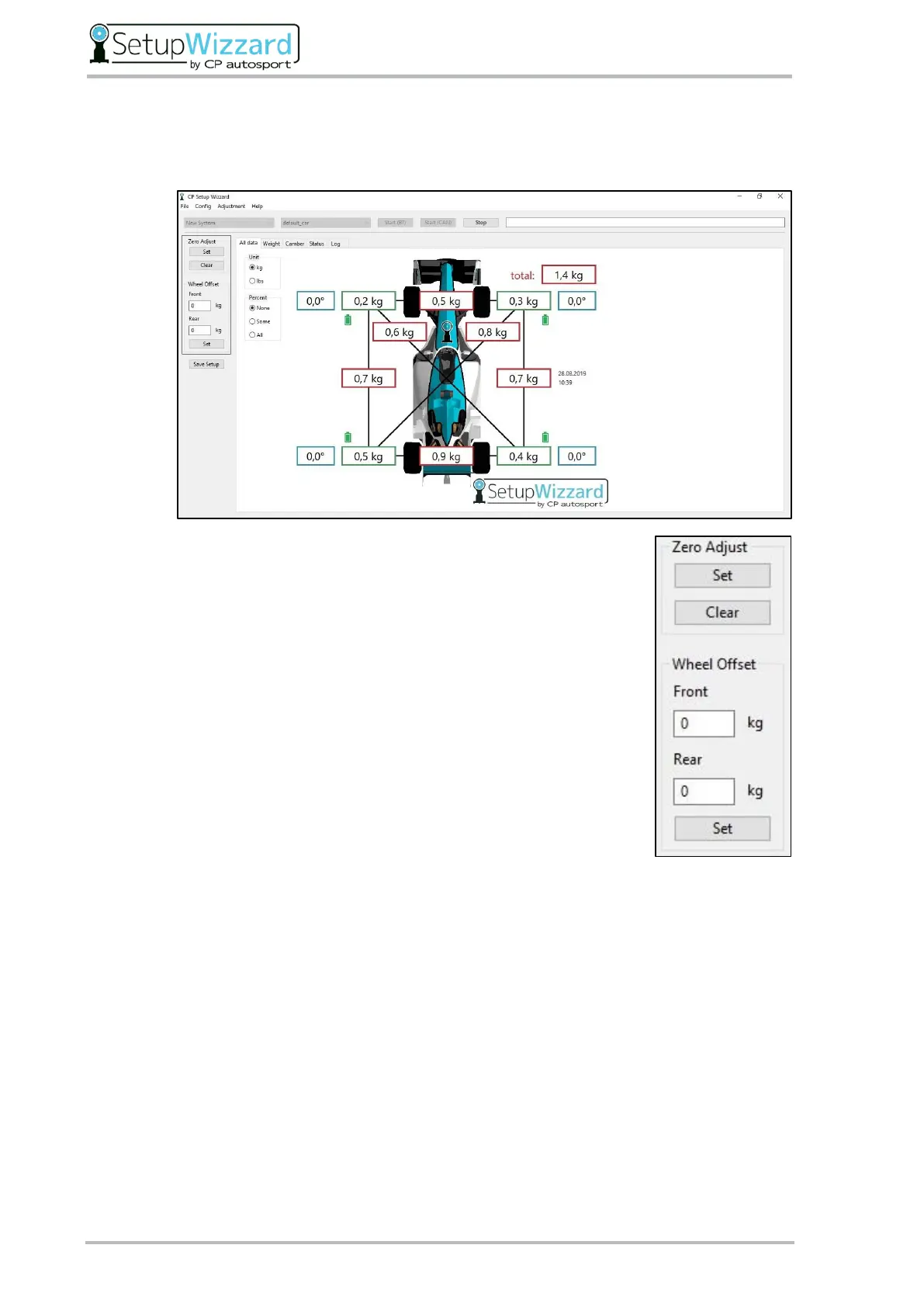 Use the buttons on the left of the user interface to tare the wheel load scales.