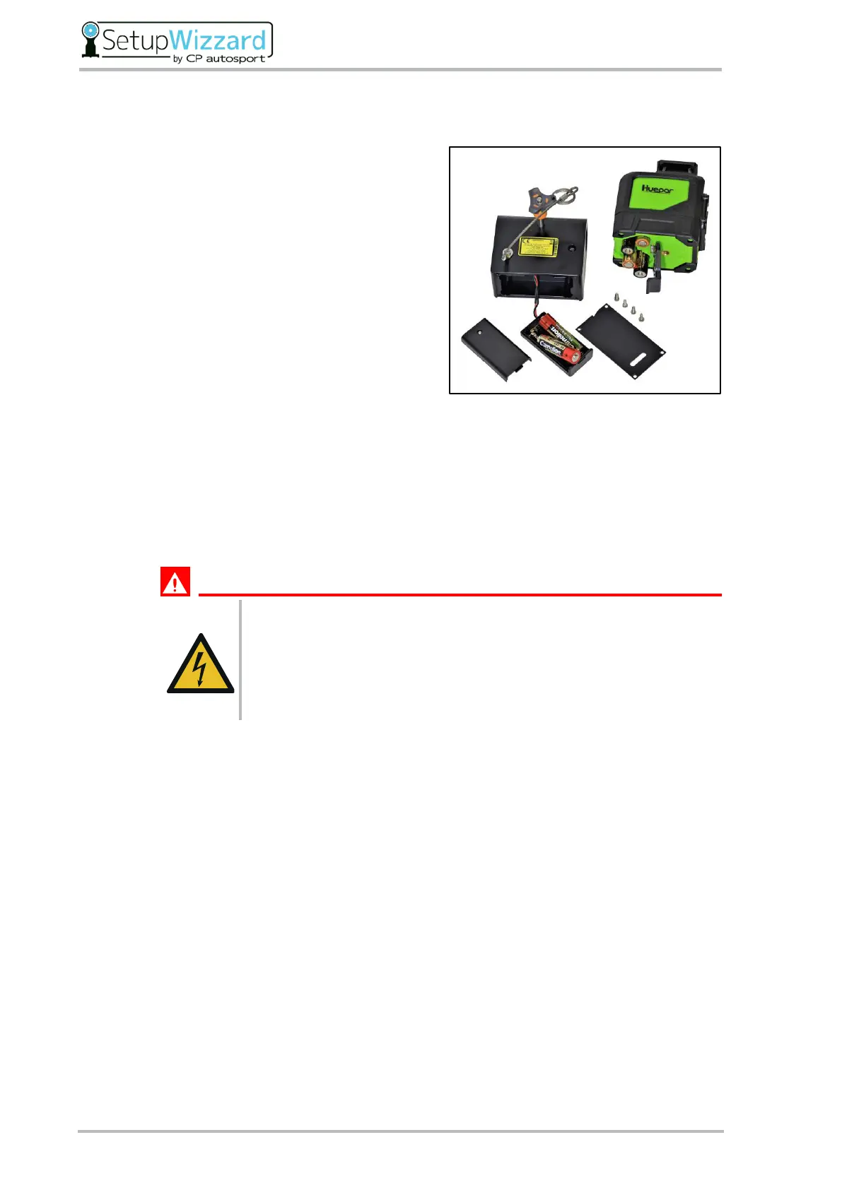 compartment on the underside of the leveling laser. Pay attention to the correct polarity of