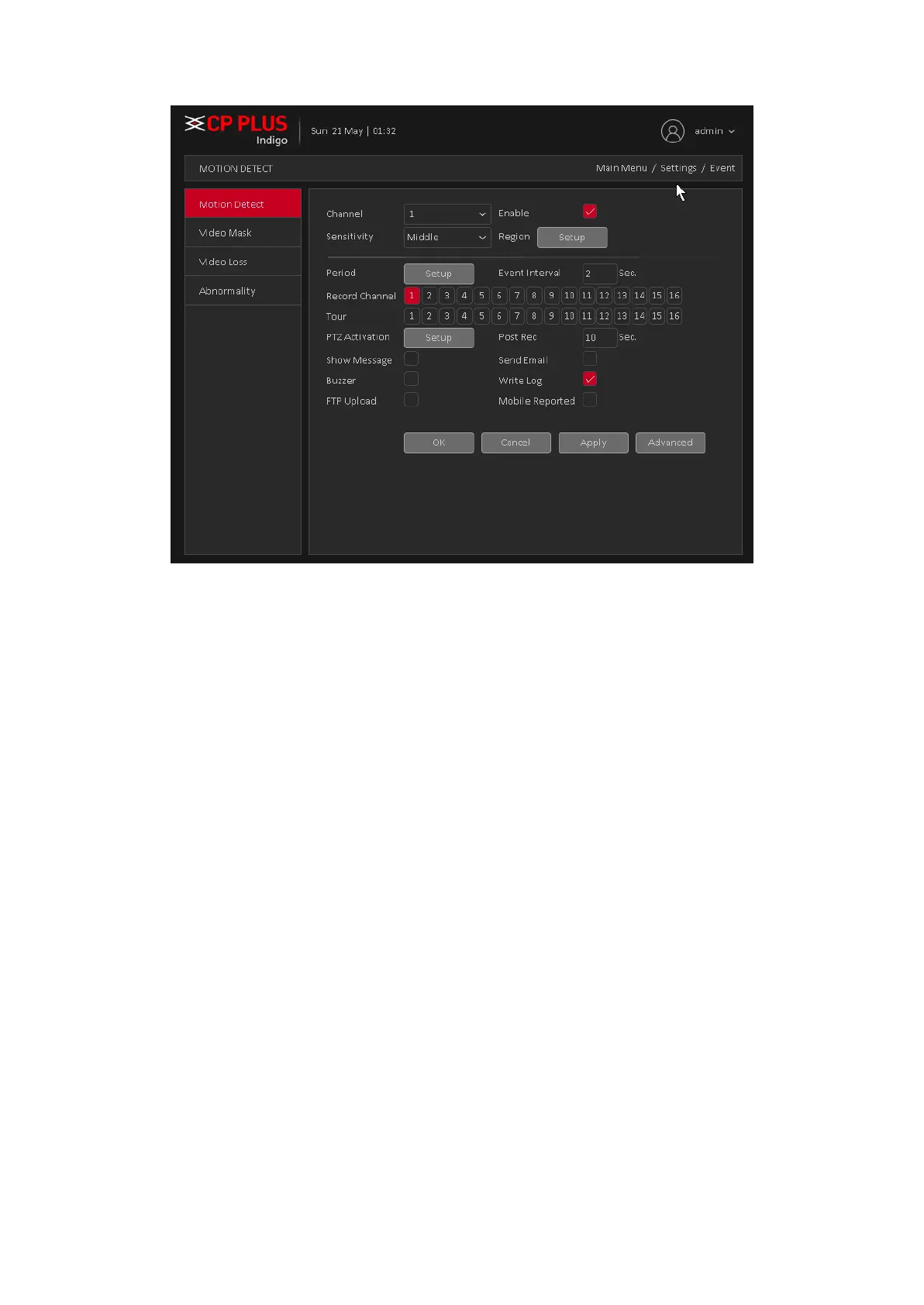 Note: where only in motion detection settings and only analog channels can set its sensitivity of