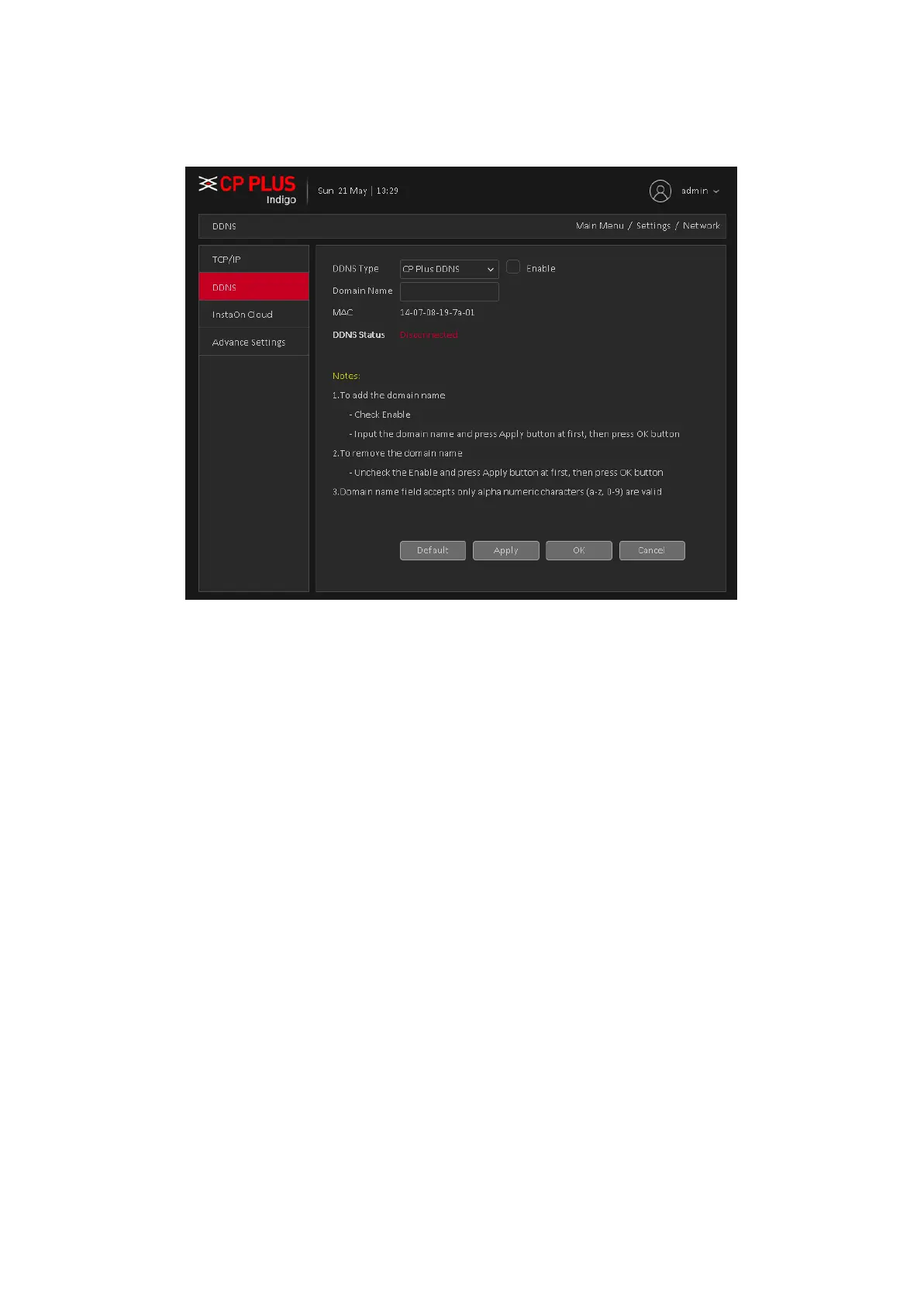 Please note DDNS type includes: CPPlus DDNS, Dyndns and NO-IP DDNS. All the DDNS can be valid