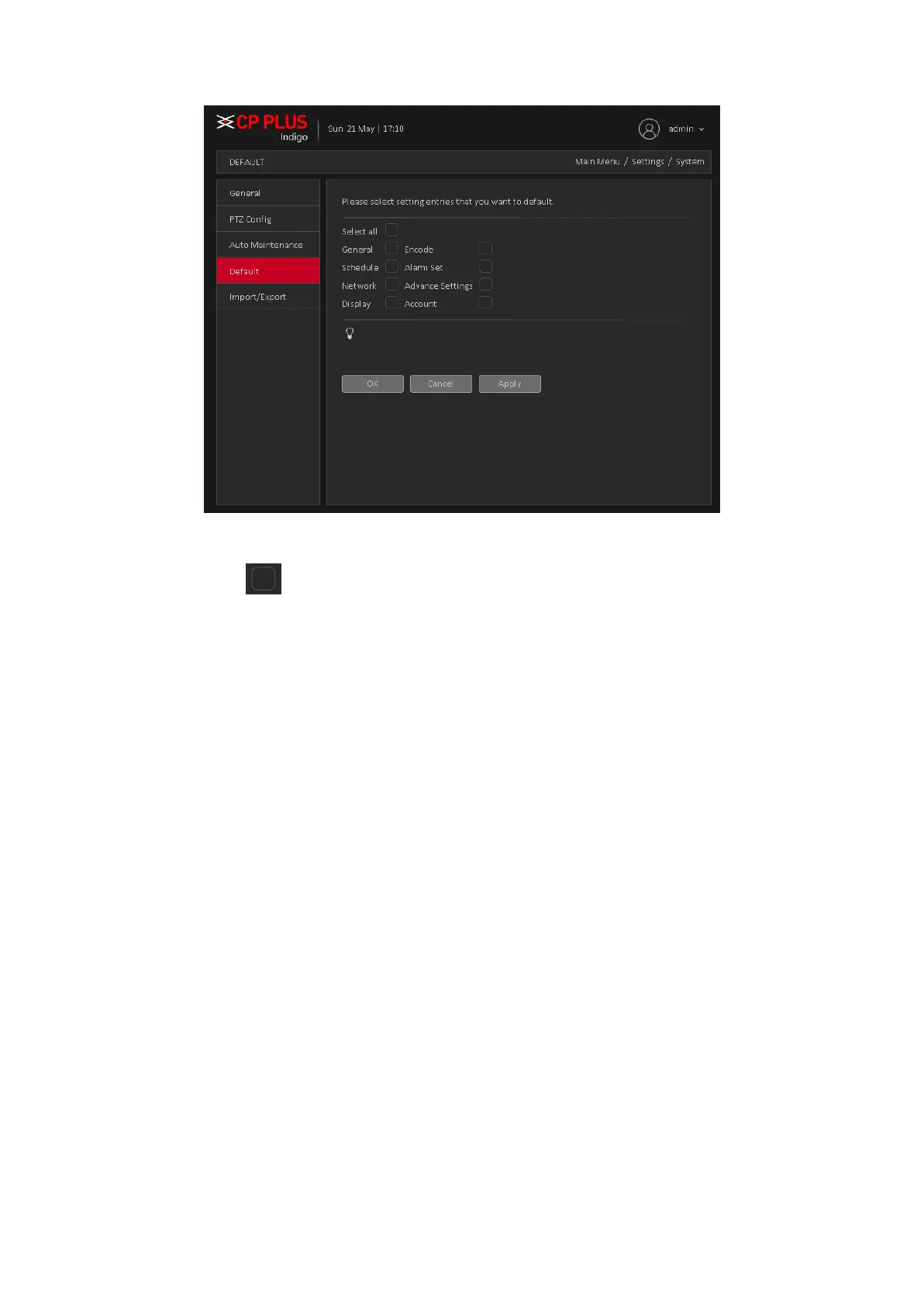 System menu color, language, time display mode, video format, IP address, user account will not