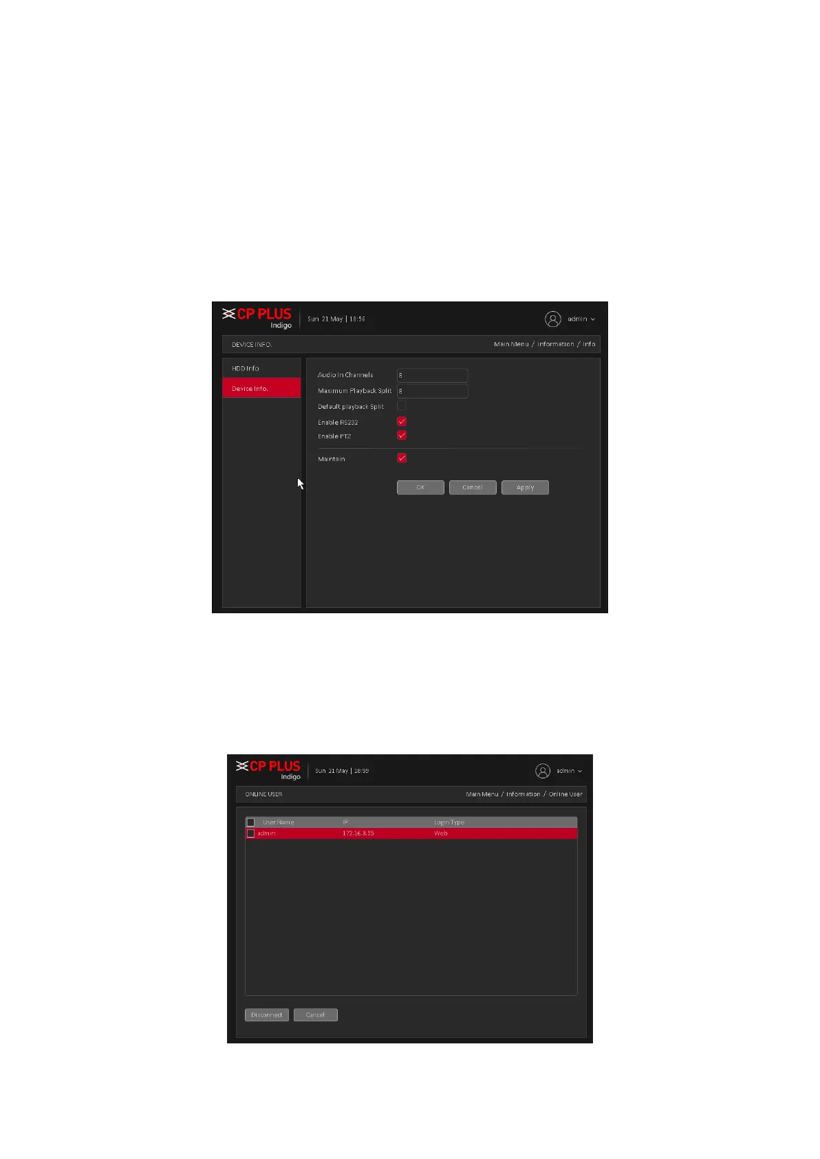 selected user to break up connection, and will not log in until device reboot. Online user interface is
