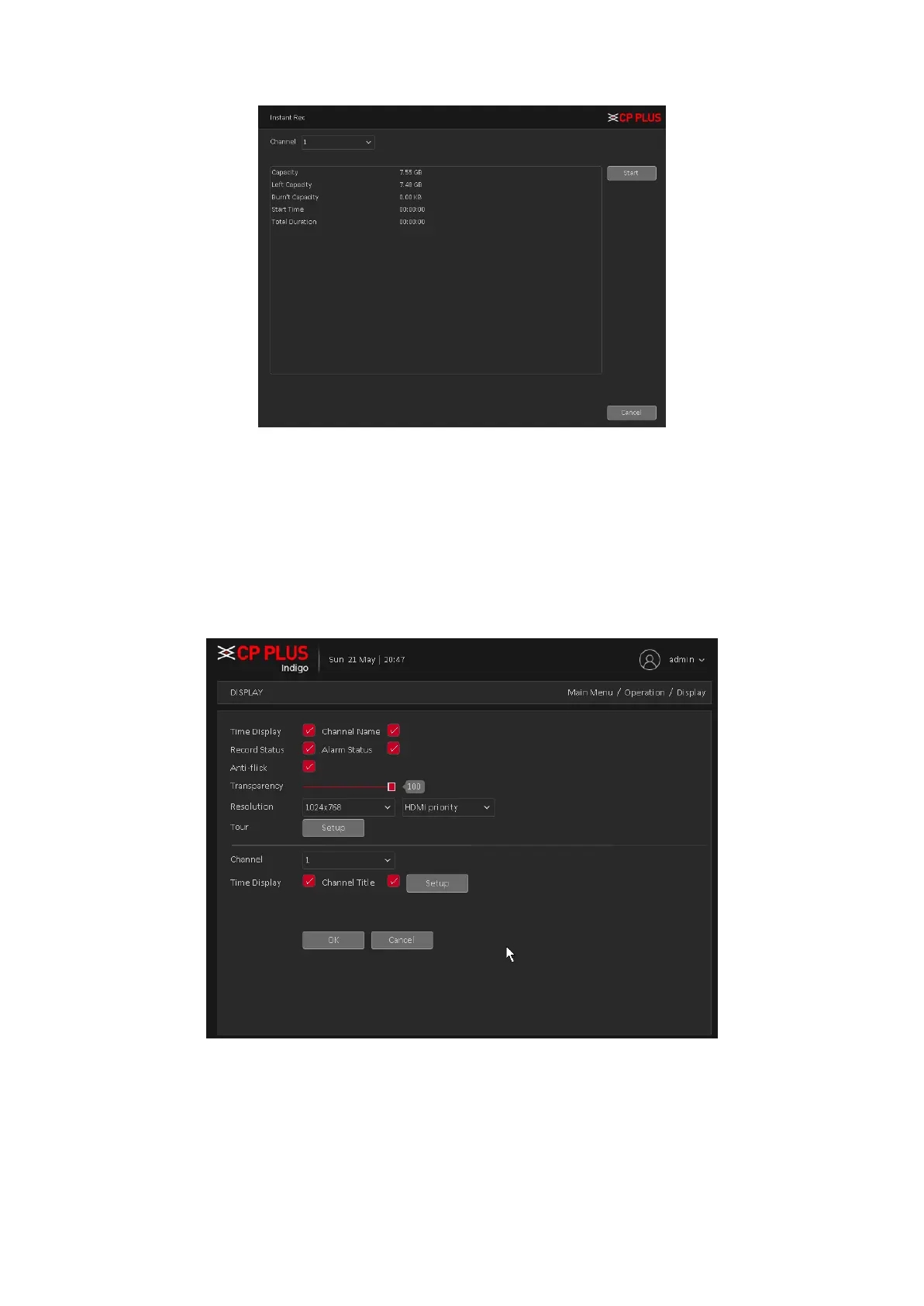 ➢ [Time Display] Means the selective state. Display the system data and time in the live