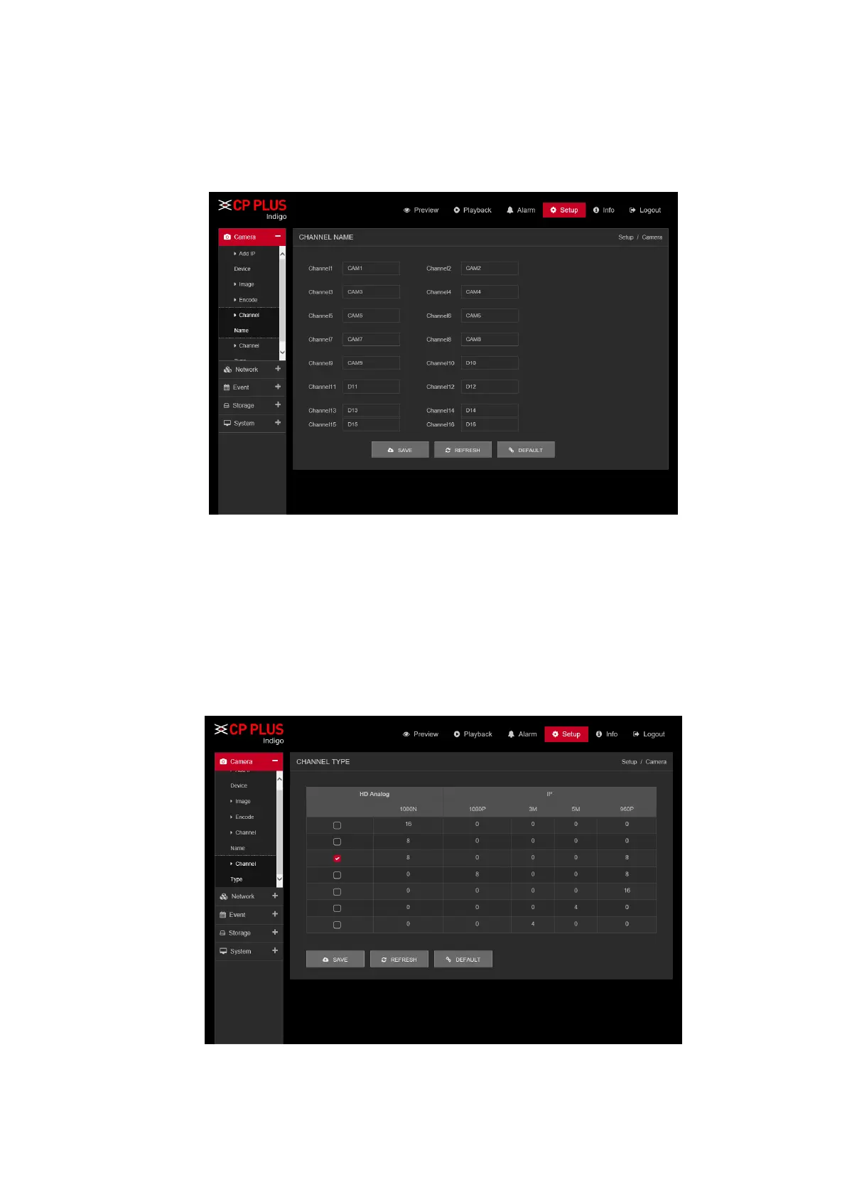It is to set channel type. Each channel supports analog camera HD Analog / Network camera connection.