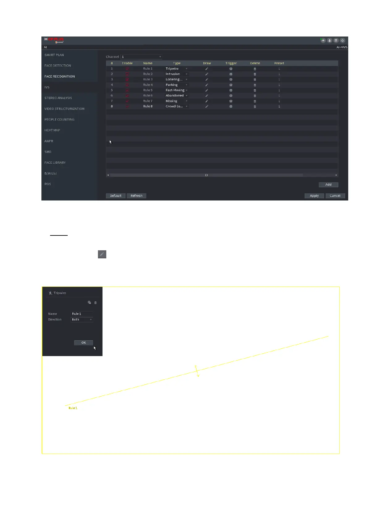 Click to draw the rule on the surveillance video, the system displays as Figure 1-130.