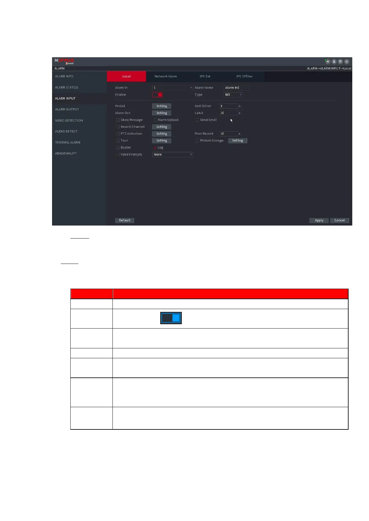 Step 3 Set Alarm In channel number and then select the Enable check box to enable the