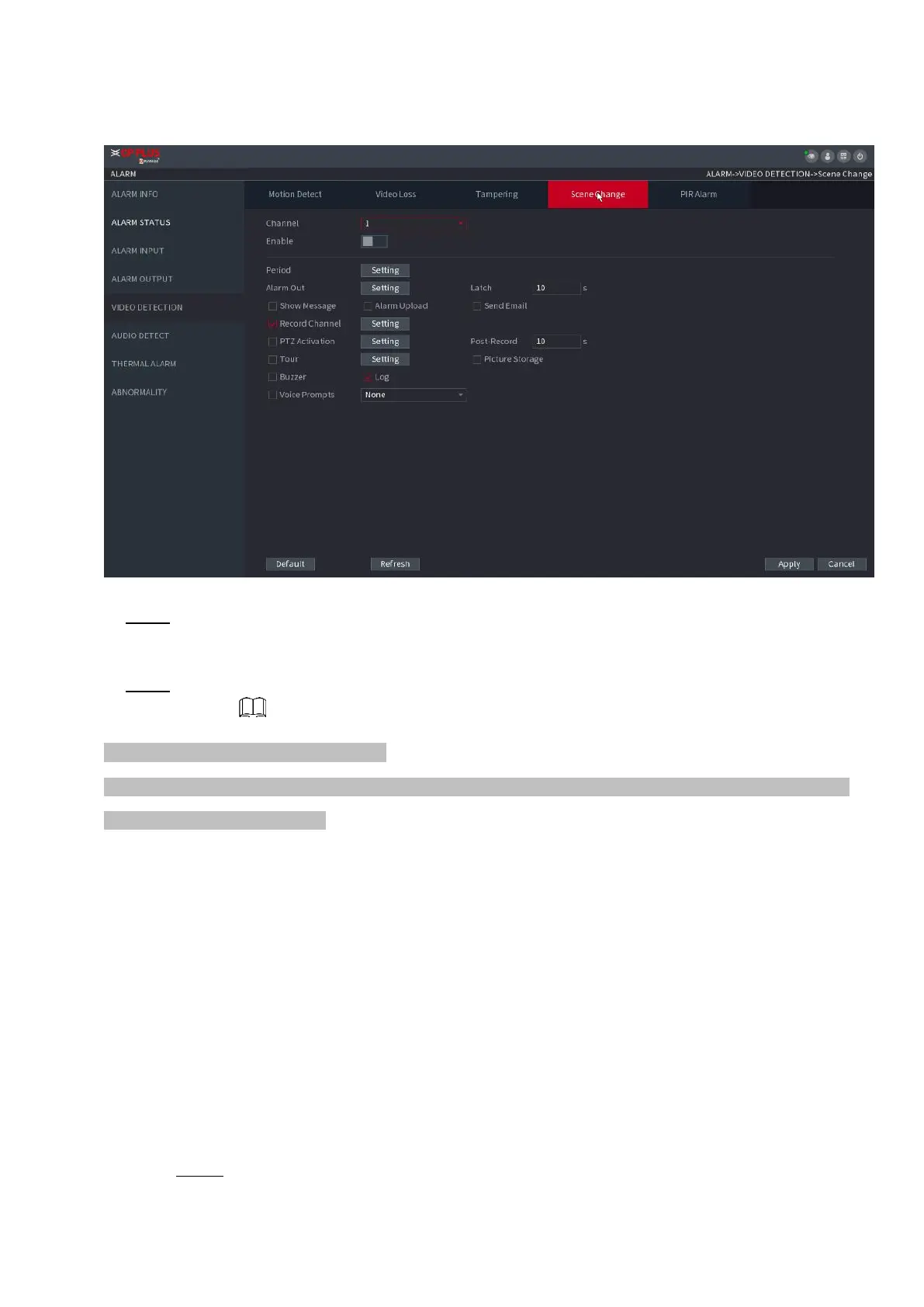 ⚫ Step 2 To configure the settings for the scene change parameters, see "1.8.5.1 Motion Detect." The scene