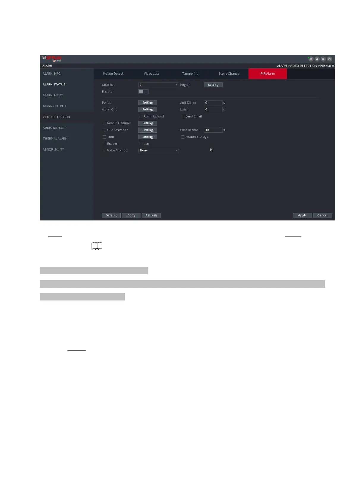 ⚫ Step 2 To configure the settings for the PIR alarm parameters, see "1.8.5.1 Motion Detect." Step 3 Click