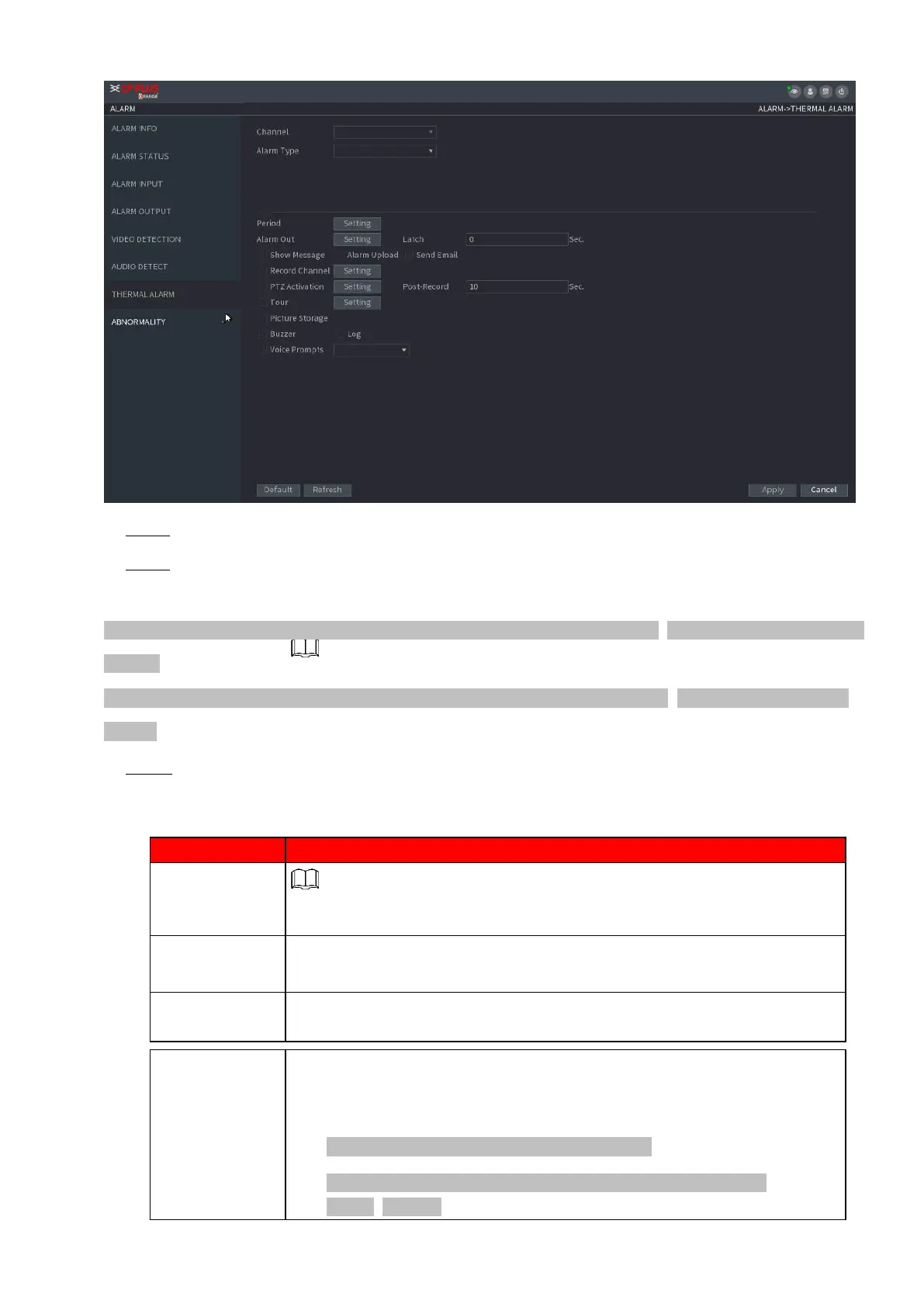 ⚫ Step 2 Select a channel and alarm type, enable the thermal alarm function.