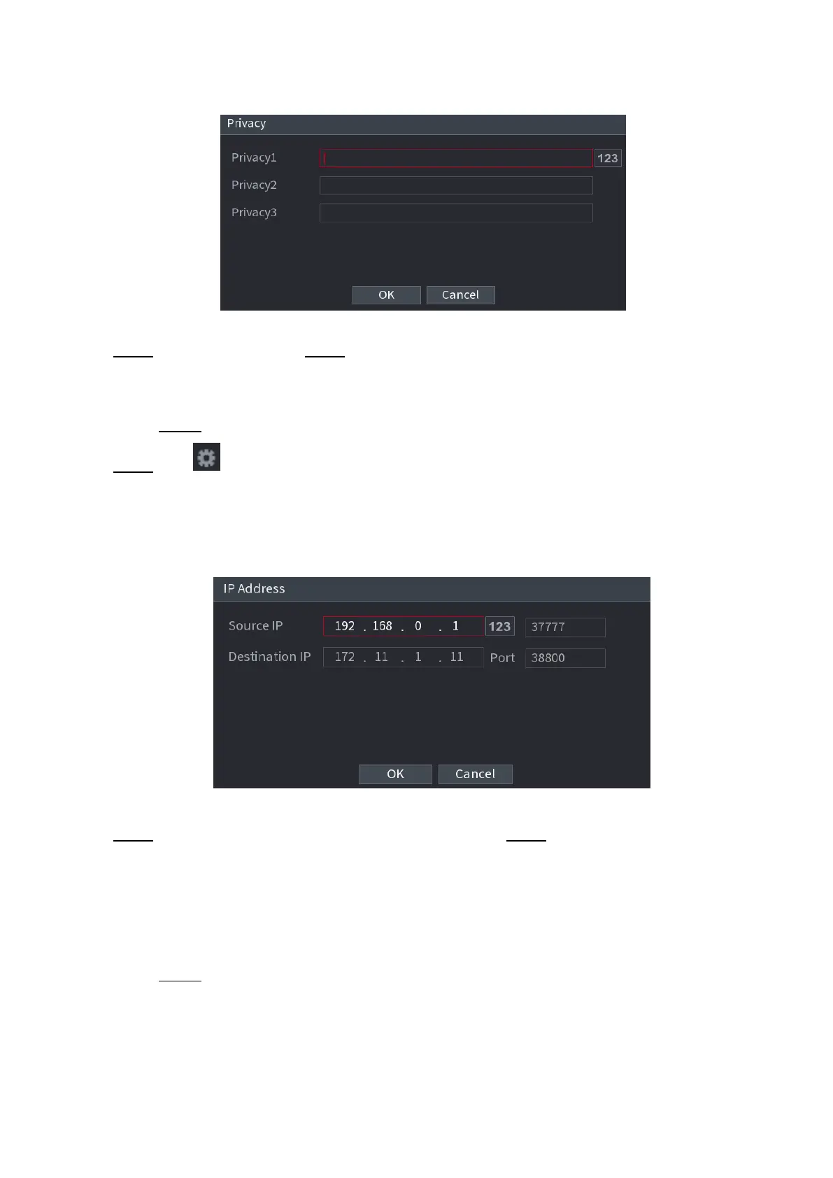 ⚫ Step 3 Source IP and Port. Refers to POS IP address and port. Step 4 Click OK to complete setup.