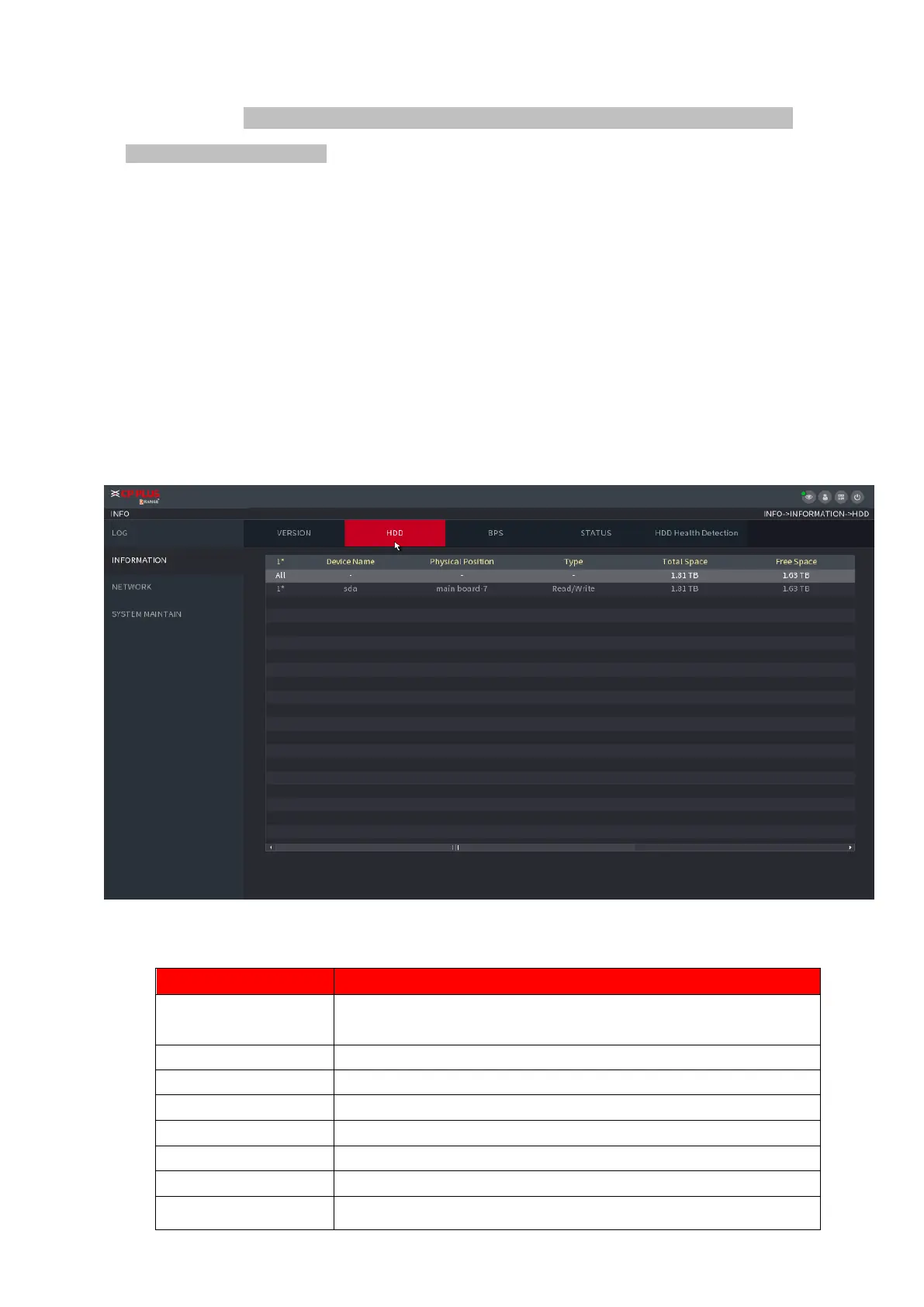 Select Main Menu > OPERATION > INFOMATION > HDD, the HDD interface is displayed. See
