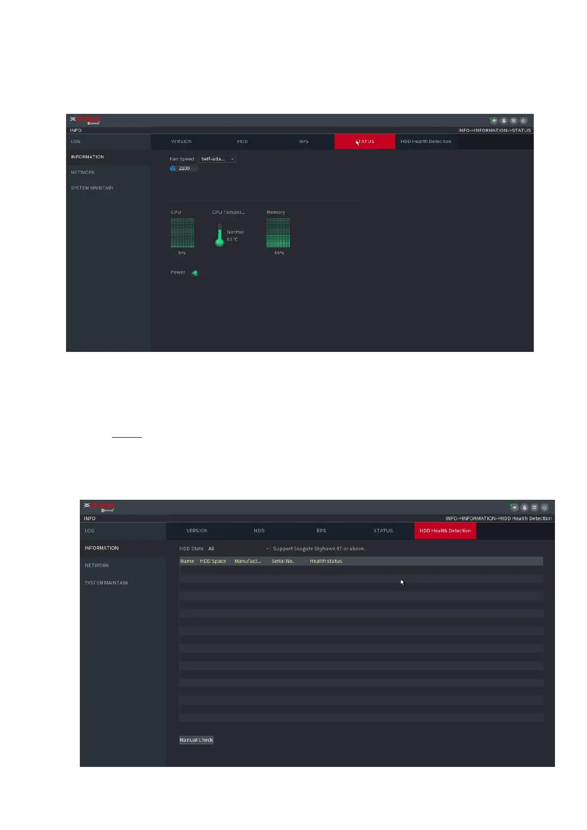 Step 1 Select Main Menu > OPERATION > INFOMATION > HDD Health Detection.