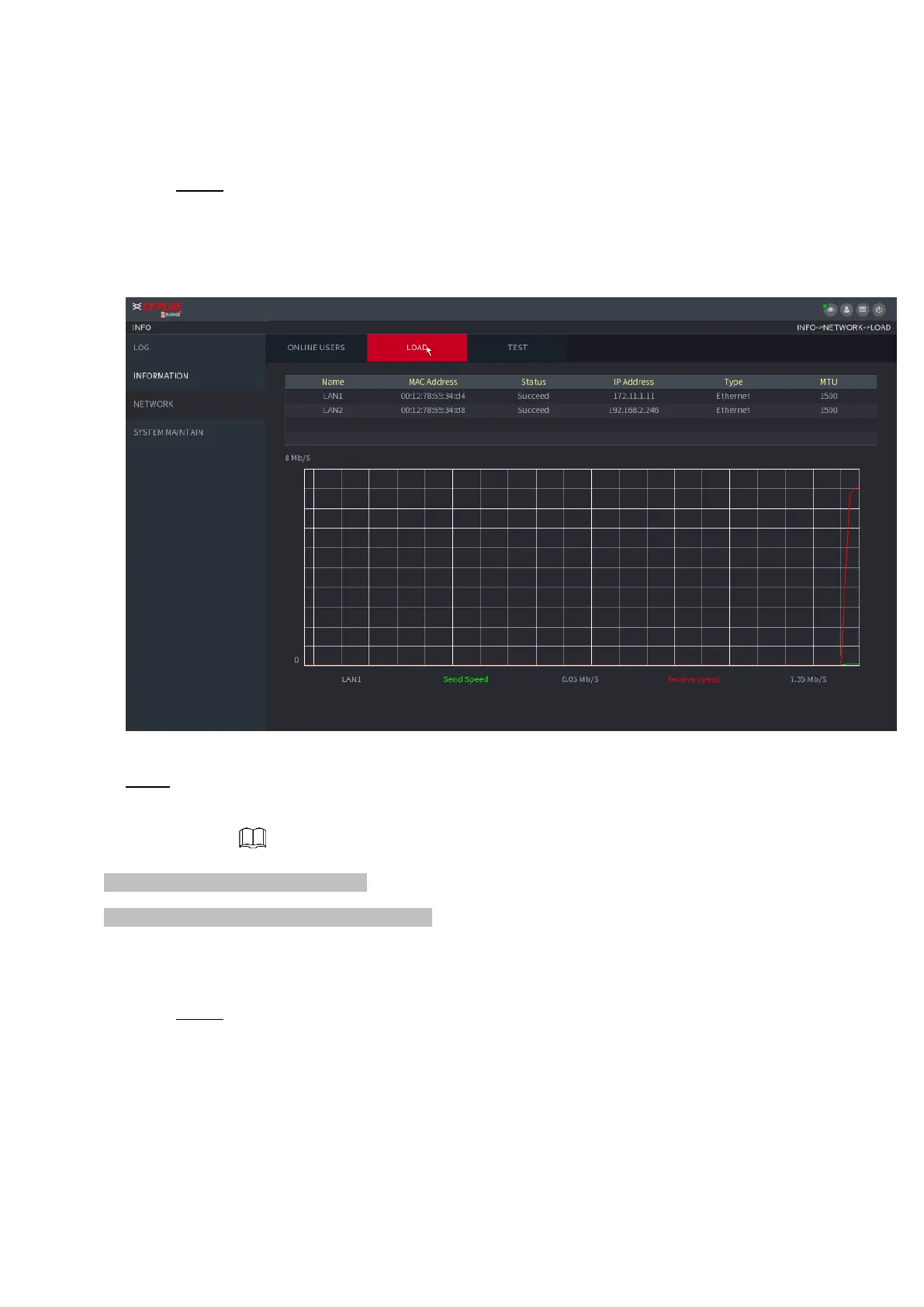⚫ System displays LAN1 load by default.