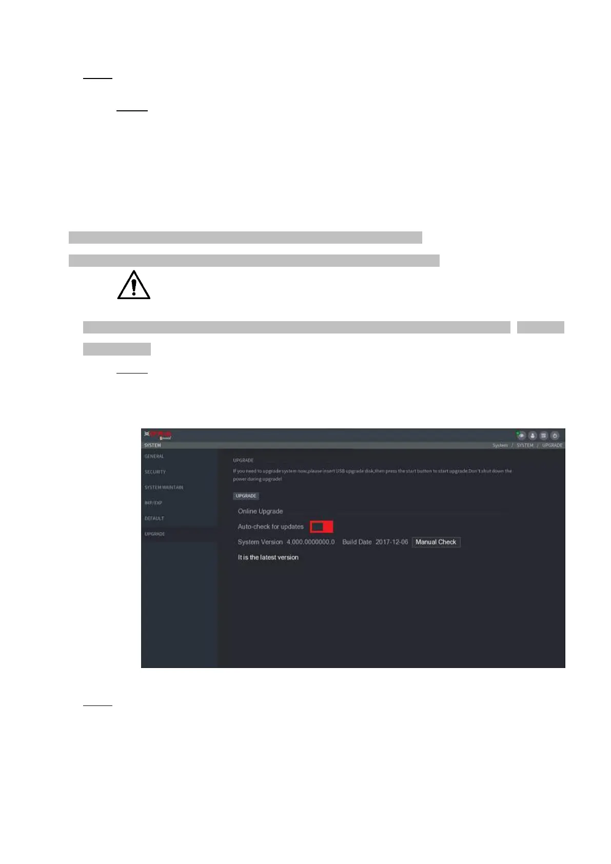 ⚫ When the Device is connected to Internet, you can use online upgrade function to upgrade the system.