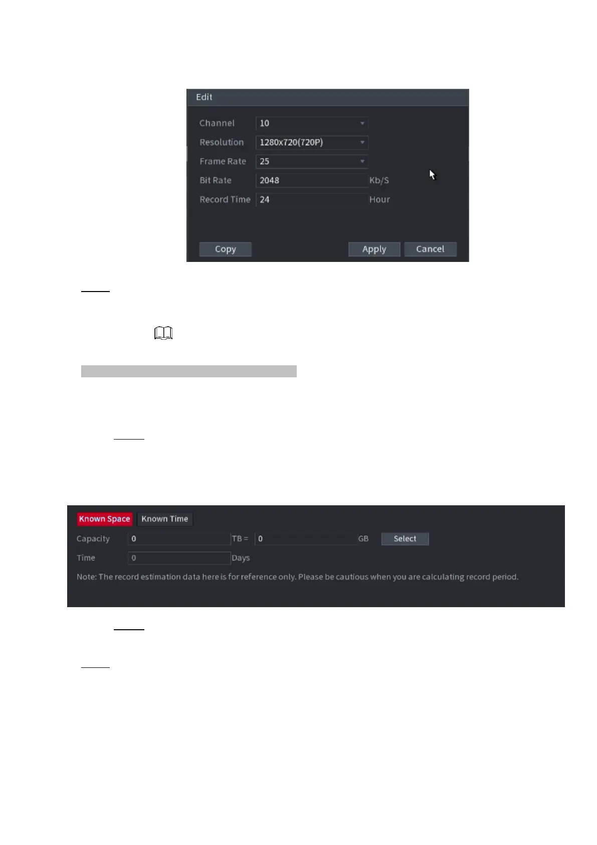 ⚫ Then the system will calculate the time period that can be used for storage according to the channels