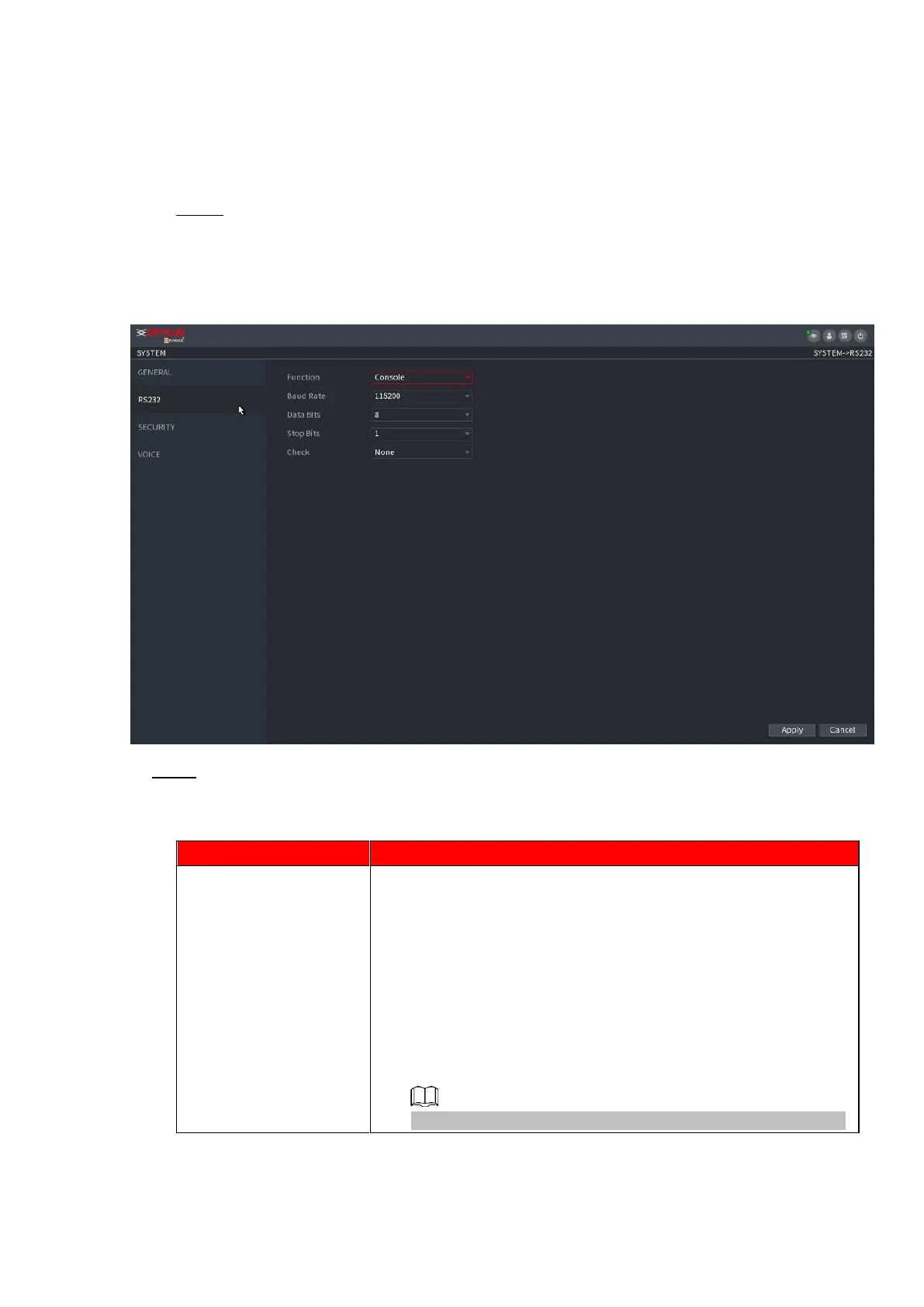 Step 1 Select MAIN MENU > SYSTEM >RS232.