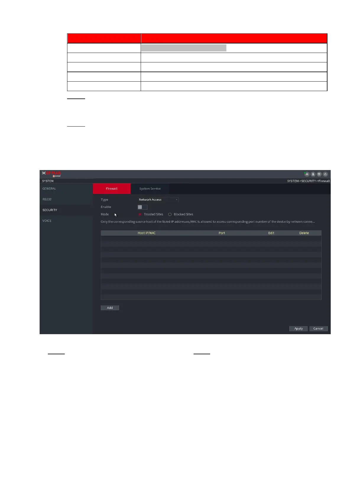 Step 1 Select Main Menu > SYSTEM > SECURITY > Firewall.