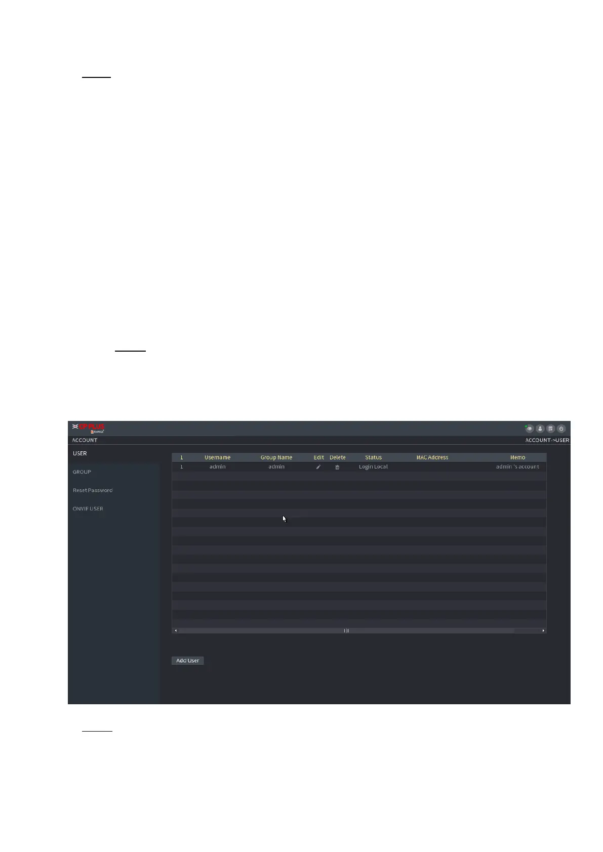 ⚫ For group or user management, there are two levels: admin and user. The user name shall be unique, and one