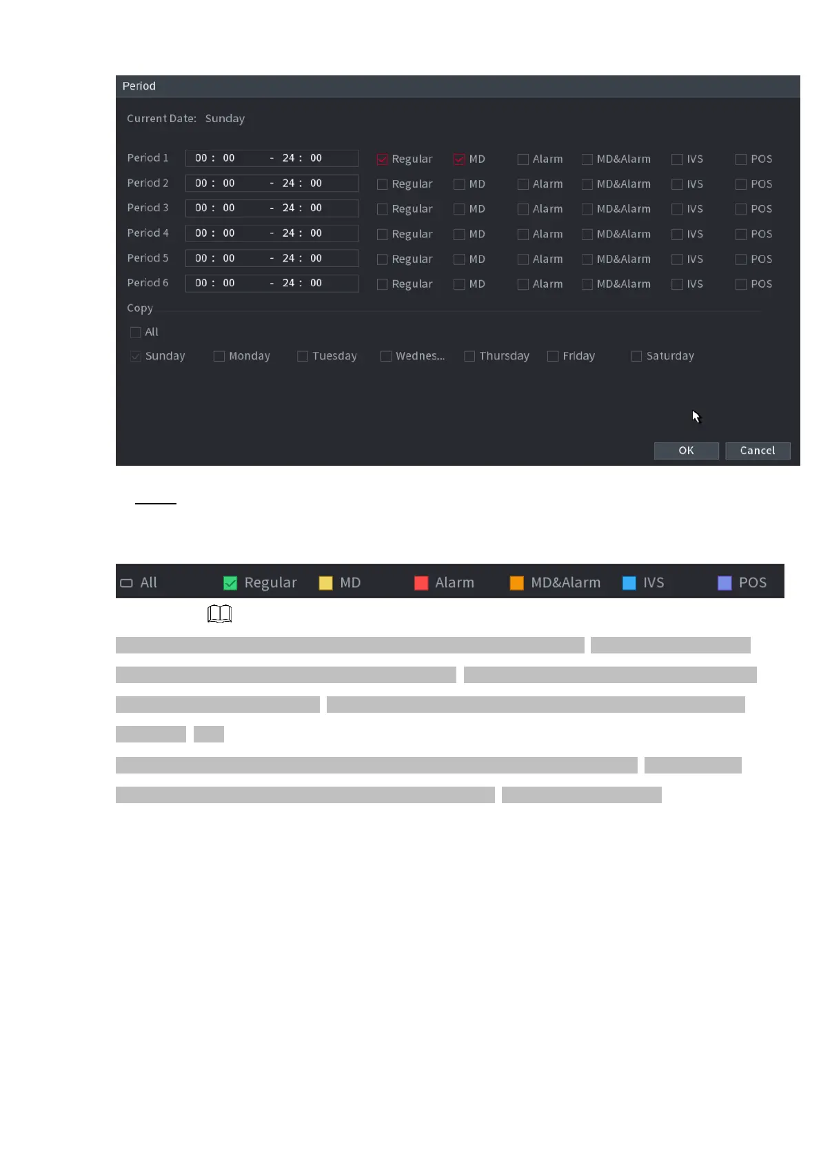 ⚫ When the record type is MD (motion detect), alarm, MD&Alarm, IVS and POS, refer to "1.8.5 Video