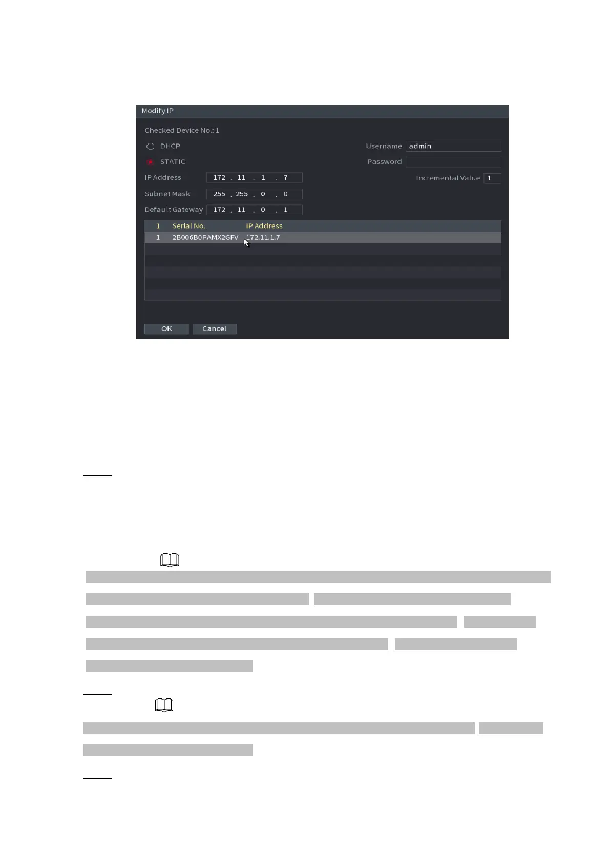 ⚫ Check Static, and then input IP address, subnet mask, default gateway and incremental value.